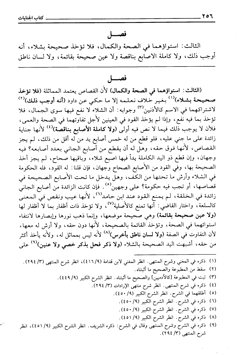 فَصْلٌ: الثَّالِثُ: اسْتِوَاؤُهُمَا فِي الصِّحَّةِ، وَالْكَمَالِ فَلَا تُؤْخَذُ صَحِيحَةٌ بِشَلَّاءَ، أنه أوجب ذلك، وَلَا كَاملةُ الْأَصَابِعِ بِنَاقِصَةٍ وَلَا عَيْنٌ صَحِيحَةٌ بِقَائِمَةٍ وَلَا لِسَانٌ نَاطِقٌ