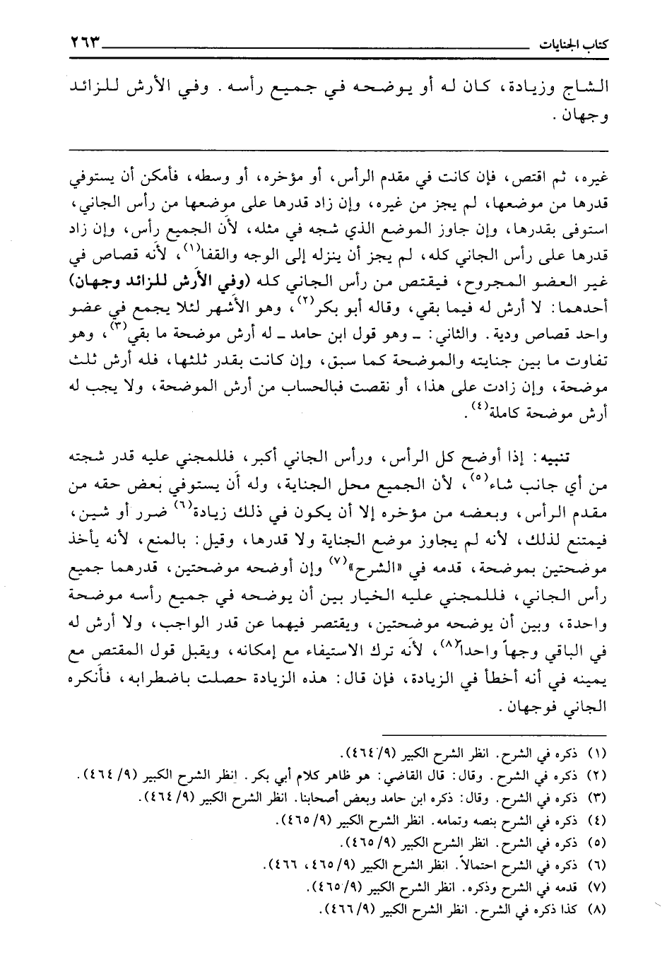ـــــــــــــــــــــــــــــQغَيْرِهِ، ثُمَّ اقْتَصَّ، فَإِنْ كَانَتْ فِي مُقَدَّمِ الرَّأْسِ، أَوْ مُؤَخَّرِهِ، أَوْ وَسَطِهِ فَأَمْكَنَ أَنْ يَسْتَوْفِيَ قَدْرَهَا مِنْ مَوْضِعِهَا لَمْ يَجُزْ مِنْ غَيْرِهِ، وَإِنْ زَادَ قَدْرُهَا عَلَى مَوْضِعِهَا مِنْ رَأْسِ الْجَانِي اسْتَوْفَى بِقَدْرِهَا، وَإِنْ جَاوَزَ الْمَوْضِعَ الَّذِي شَجَّهُ فِي مِثْلِهِ ; لِأَنَّ الْجَمِيعَ رَأْسٌ، وَإِنْ زَادَ قَدْرُهَا عَلَى رَأْسِ الْجَانِي كُلِّهِ لَمْ يَجُزْ أَنْ يُنْزِلَهُ إِلَى الْوَجْهِ، وَالْقَفَا ; لِأَنَّهُ قِصَاصٌ فِي غَيْرِ الْعُضْوِ الْمَجْرُوحِ فَيَقْتَصُّ مِنْ رَأْسِ الْجَانِي كُلِّهِ (وَفِي الْأَرْشِ لِلزَّائِدِ وَجْهَانِ:) أَحَدُهُمَا: لَا أَرْشَ لَهُ فِيمَا بَقِيَ، وَقَالَهُ أَبُو بَكْرٍ، وَهُوَ الْأَشْهَرُ لِئَلَّا يُجْمَعَ فِي عُضْوٍ وَاحِدٍ قِصَاصٌ وَدِيَةٌ.