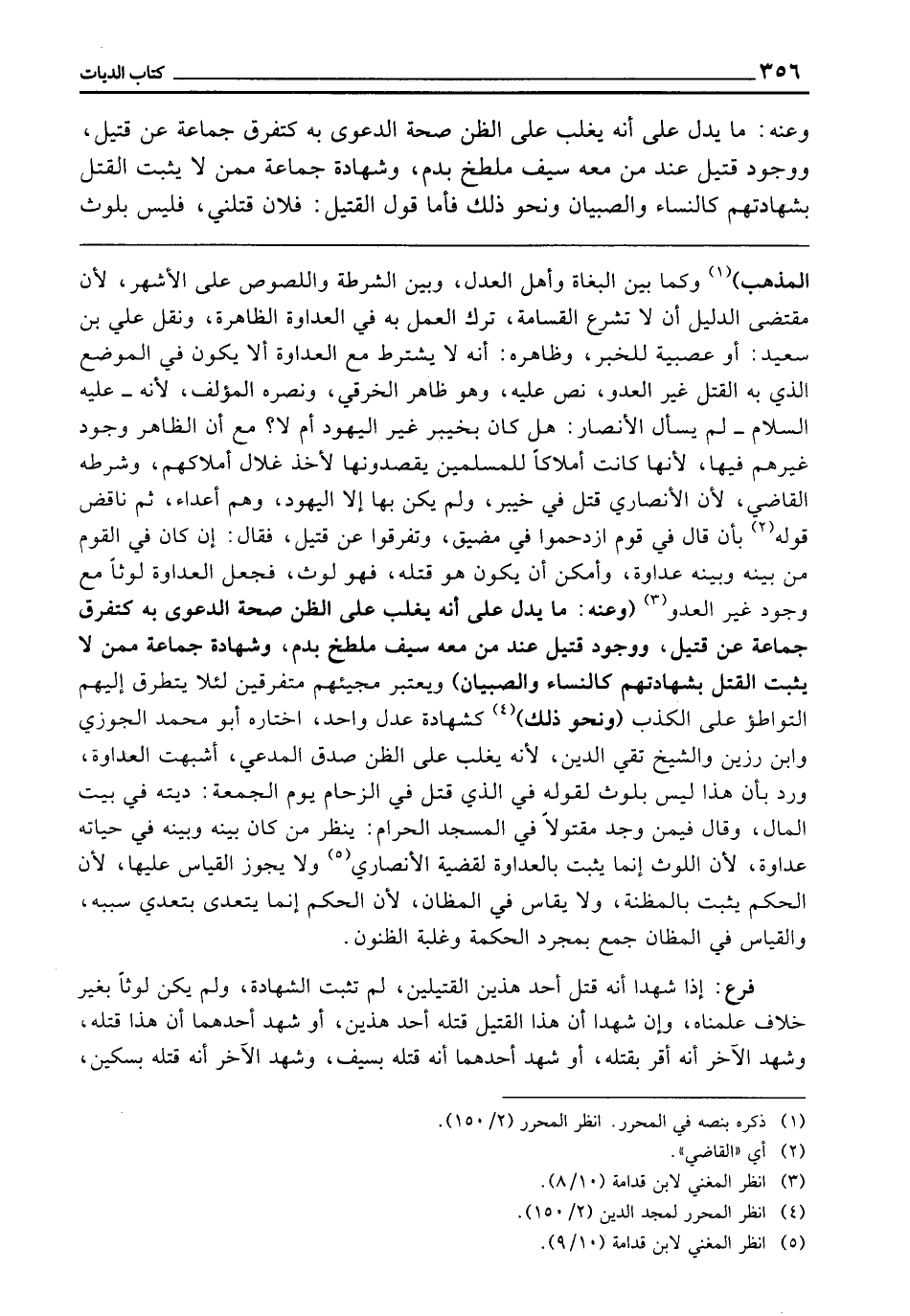 ـــــــــــــــــــــــــــــQالْمَذْهَبِ) وَكَمَا بَيْنَ الْبُغَاةِ وَأَهْلِ الْعَدْلِ، وَبَيْنَ الشُّرْطَةِ وَاللُّصُوصِ عَلَى الْأَشْهَرِ، لِأَنَّ مُقْتَضَى الدَّلِيلِ أَنْ لَا تُشْرَعَ الْقَسَامَةُ، تَرْكُ الْعَمَلِ بِهِ فِي الْعَدَاوَةِ الظَّاهِرَةِ، وَنَقَلَ عَلِيُّ بْنُ سَعِيدٍ: أَوْ عَصَبِيَّةٌ لِلْخَبَرِ، وَظَاهِرُهُ: أَنَّهُ لَا يُشْتَرَطُ مَعَ الْعَدَاوَةِ أَلَّا يَكُونَ فِي الْمَوْضِعِ الَّذِي بِهِ القتل غير الْعَدُوُّ، نَصَّ عَلَيْهِ، وَهُوَ ظَاهِرُ الْخِرَقِيِّ، وَنَصَرَهُ الْمُؤَلِّفُ، لِأَنَّهُ - عَلَيْهِ السَّلَامُ - لَمْ يَسْأَلِ الْأَنْصَارَ: هَلْ كَانَ بِخَيْبَرَ غَيْرُ الْيَهُودِ أَمْ لَا؟ مَعَ أَنَّ الظَّاهِرَ وُجُودُ غَيْرِهِمْ فِيهَا، لِأَنَّهَا كَانَتْ أَمْلَاكًا لِلْمُسْلِمِينَ يَقْصِدُونَهَا لِأَخْذِ غِلَالِ أَمْلَاكِهِمْ، وَشَرَطَهُ الْقَاضِي، لِأَنَّ الْأَنْصَارِيَّ قُتِلَ فِي خَيْبَرَ، وَلَمْ يَكُنْ بِهَا إِلَّا الْيَهُودُ، وَهُمْ أَعْدَاءٌ، ثُمَّ نَاقَضَ قَوْلَهُ بِأَنْ قَالَ: فِي قَوْمٍ ازْدَحَمُوا فِي مَضِيقٍ وَتَفَرَّقُوا عَنْ قَتِيلٍ، فَقَالَ: إِنْ كَانَ فِي الْقَوْمِ مَنْ بَيْنَهُ وَبَيْنَهُ عَدَاوَةٌ وَأَمْكَنَ أَنْ يَكُونَ هُوَ قَتَلَهُ فَهُوَ لَوْثٌ، فَجَعَلَ الْعَدَاوَةَ لَوْثًا مَعَ وُجُودِ غَيْرِ الْعَدُوِّ (وَعَنْهُ: مَا يَدُلُّ عَلَى أَنَّهُ يَغْلِبُ عَلَى الظَّنِّ صِحَّةُ الدَّعْوَى بِهِ كَتَفَرُّقِ جَمَاعَةٍ عَنْ قَتِيلٍ، وَوُجُودُ قَتِيلٍ عِنْدَ مَنْ مَعَهُ سَيْفٌ مُلَطَّخٌ بِدَمٍ، وَشَهَادَةُ جَمَاعَةٍ مِمَّنْ لَا يَثْبُتُ الْقَتْلُ بِشَهَادَتِهِمْ، كَالنِّسَاءِ وَالصِّبْيَانِ) وَيُعْتَبَرُ مَجِيئُهُمْ مُتَفَرِّقِينَ لِئَلَّا يَتَطَرَّقَ إِلَيْهِمُ التَّوَاطُؤُ عَلَى الْكَذِبِ (وَنَحْوِ ذَلِكَ) كَشَهَادَةِ عَدْلٍ وَاحِدٍ، اخْتَارَهُ أَبُو مُحَمَّدٍ الْجَوْزِيُّ وابن رزين وَالشيخ تَقِيِّ الدِّينِ، لِأَنَّهُ يَغْلِبُ عَلَى الظَّنِّ صِدْقُ الْمُدَّعِي، أَشْبَهَتِ الْعَدَاوَةَ، وَرُدَّ بِأَنَّ هَذَا لَيْسَ بِلَوْثٍ لِقَوْلِهِ فِي الَّذِي قُتِلَ فِي الزِّحَامِ يَوْمَ الْجُمُعَةِ: دِيَتُهُ فِي بَيْتِ الْمَالِ، وَقَالَ فِيمَنْ وُجِدَ مَقْتُولًا فِي الْمَسْجِدِ الْحَرَامِ: يُنْظَرُ مَنْ كَانَ بَيْنَهُ وَبَيْنَهُ فِي حَيَاتِهِ عَدَاوَةٌ، لِأَنَّ اللَّوْثَ إِنَّمَا يَثْبُتُ بِالْعَدَاوَةِ، لِقَضِيَّةِ الْأَنْصَارِيِّ، وَلَا يَجُوزُ الْقِيَاسُ عَلَيْهَا لِأَنَّ الْحُكْمَ يَثْبُتُ بِالْمَظِنَّةِ وَلَا يُقَاسُ فِي الْمَظَانِّ، لِأَنَّ الْحُكْمَ إِنَّمَا يَتَعَدَّى بِتَعَدِّي سَبَبِهِ، وَالْقِيَاسُ فِي الْمَظَانِّ جَمْعٌ بِمُجَرَّدِ الْحِكْمَةِ وَغَلَبَةِ الظُّنُونِ.