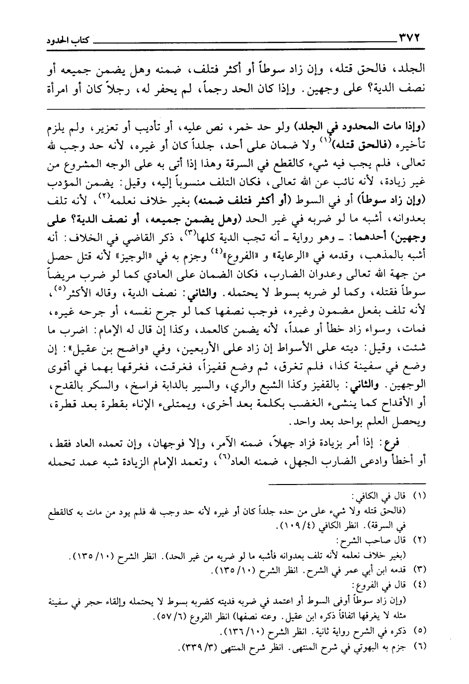ـــــــــــــــــــــــــــــQ (وَإِذَا مَاتَ الْمَحْدُودُ فِي الْجَلْدِ) وَلَوْ حَدُّ خَمْرٍ، نَصَّ عَلَيْهِ، أَوْ تَأْدِيبٍ أَوْ تَعْزِيرٍ، وَلَمْ يَلْزَمْ تَأْخِيرُهُ (فَالْحَقُّ قَتْلُهُ) وَلَا ضَمَانَ عَلَى أَحَدٍ، جَلْدًا كَانَ أَوْ غَيْرَهُ، لِأَنَّهُ حَدٌّ وَجَبَ لِلَّهِ تَعَالَى، فَلَمْ يَجِبْ فِيهِ شَيْءٌ كَالْقَطْعِ فِي السَّرِقَةِ، وَهَذَا إِذَا أَتَى بِهِ عَلَى الْوَجْهِ الْمَشْرُوعِ مِنْ غَيْرِ زِيَادَةٍ، لِأَنَّهُ نَائِبٌ عَنِ اللَّهِ تَعَالَى، فَكَانَ التَّلَفُ مَنْسُوبًا إِلَيْهِ، وَقِيلَ: يَضْمَنُ الْمُؤَدِّبُ (وَإِنْ زَادَ سَوْطًا) أَوْ فِي السَّوْطِ (أَوْ أَكْثَرَ فَتَلِفَ ضَمِنَهُ) بِغَيْرِ خِلَافٍ نَعْلَمُهُ، لِأَنَّهُ تَلِفَ بِعُدْوَانِهِ، أَشْبَهَ مَا لَوْ ضَرَبَهُ فِي غَيْرِ الْحَدِّ (وَهَلْ يَضْمَنُ جَمِيعَهُ، أَوْ نِصْفَ الدِّيَةِ؟ عَلَى وَجْهَيْنِ) أَحَدُهُمَا: وَهُوَ رِوَايَةٌ، أَنَّهُ تَجِبُ الدِّيَةُ كُلُّهَا، ذَكَرَ الْقَاضِي فِي الْخِلَافِ أَنَّهُ أَشْبَهُ بِالْمَذْهَبِ، وَقَدَّمَهُ فِي الرِّعَايَةِ وَالْفُرُوعِ، وَجَزَمَ بِهِ فِي الْوَجِيزِ، لِأَنَّهُ قَتْلٌ حَصَلَ مِنْ جِهَةِ اللَّهِ تَعَالَى وَعُدْوَانِ الضَّارِبِ، فَكَانَ الضَّمَانُ عَلَى الْعَادِي كَمَا لَوْ ضَرَبَ مَرِيضًا سَوْطًا فَقَتَلَهُ، وَكَمَا لَوْ ضَرَبَهُ بِسَوْطٍ لَا يَحْتَمِلُهُ، وَالثَّانِي: نِصْفُ الدِّيَةِ، وَقَالَهُ الْأَكْثَرُ، لِأَنَّهُ تَلِفَ بِفِعْلٍ مَضْمُونٍ وَغَيْرِهِ، فَوَجَبَ نِصْفُهَا، كَمَا لَوْ جَرَحَ نَفْسَهُ، أَوْ جَرَحَهُ غَيْرُهُ، فَمَاتَ وَسَوَاءٌ زَادَ خَطَأً أَوْ عَمْدًا، لِأَنَّهُ يَضْمَنُ كَالْعَمْدِ، وَكَذَا إِنْ قَالَ لَهُ الْإِمَامُ: اضْرِبْ مَا شِئْتَ، وَقِيلَ: دِيَتُهُ عَلَى الْأَسْوَاطِ إِنْ زَادَ عَلَى الْأَرْبَعِينَ، وَفِي وَاضِحِ ابْنِ عَقِيلٍ: إِنْ وَضَعَ فِي سَفِينَةٍ كَذَا، فَلَمْ تَغْرَقْ، ثُمَّ وَضَعَ قَفِيزًا فَغَرِقَتْ، فَغَرَقُهَا بِهِمَا فِي أَقْوَى الْوَجْهَيْنِ.