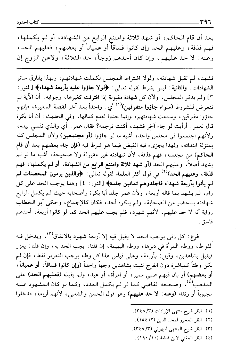 بَعْدَ أَنْ قَامَ الْحَاكِمُ، أَوْ شَهِدَ ثَلَاثَةٌ وَامْتَنَعَ الرَّابِعُ مِنَ الشَّهَادَةِ، أَوْ لَمْ يُكْمِلْهَا، فَهُمْ قَذَفَةٌ، وَعَلَيْهِمُ الْحَدُّ. وَإِنْ كَانُوا فُسَّاقًا أَوْ عُمْيَانًا، أَوْ بَعْضُهُمْ، فَعَلَيْهِمُ الْحَدُّ، وَعَنْهُ: لَا حَدَّ عَلَيْهِمْ، وَإِنْ كَانَ أَحَدُهُمْ زَوْجًا، حُدَّ الثَّلَاثَةَ، وَلَاعَنَ الزَّوْجُ إِنْ