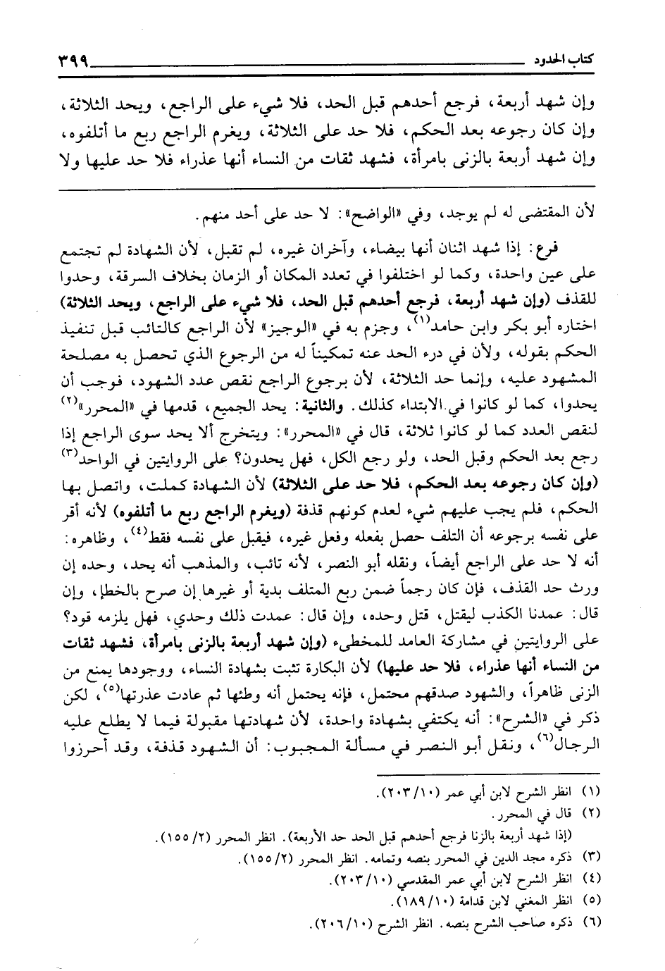(وَإِنْ شَهِدَ أَرْبَعَةٌ، فَرَجَعَ أَحَدُهُمْ قَبْلَ الْحَدِّ، فَلَا شَيْءَ عَلَى الرَّاجِعِ، وَيُحَدُّ الثَّلَاثَةُ) اخْتَارَهُ أَبُو بَكْرٍ وَابْنُ حَامِدٍ، وَجَزَمَ بِهِ فِي الْوَجِيزِ، لِأَنَّ الرَّاجِعَ كَالتَّائِبِ قَبْلَ تَنْفِيذِ الْحُكْمِ بِقَوْلِهِ، وَلِأَنَّ فِي دَرْءِ الْحَدِّ عَنْهُ تَمْكِينًا لَهُ مِنَ الرُّجُوعِ الَّذِي تَحْصُلُ بِهِ مَصْلَحَةُ الْمَشْهُودِ عَلَيْهِ، وَإِنَّمَا حُدَّ الثَّلَاثَةُ لِأَنَّ بِرُجُوعِ الرَّاجِعِ نَقْصَ عَدَدِ الشُّهُودِ فَوَجَبَ أَنْ يُحَدُّوا، كَمَا لَوْ كَانُوا فِي الِابْتِدَاءِ كَذَلِكَ. وَالثَّانِيَةُ: يُحَدُّ الْجَمِيعُ، قَدَّمَهَا فِي الْمُحَرَّرِ لِنَقْصِ الْعَدَدِ، كَمَا لَوْ كَانُوا ثَلَاثَةً، قَالَ فِي الْمُحَرَّرِ: وَيَتَخَرَّجُ أَلَّا يُحَدَّ سِوَى الرَّاجِعِ إِذَا رَجَعَ بَعْدَ الْحُكْمِ وَقَبْلَ الْحَدِّ، وَلَوْ رَجَعَ الْكُلُّ، فَهَلْ يُحَدُّونَ؟ عَلَى الرِّوَايَتَيْنِ فِي الْوَاحِدِ (وَإِنْ كَانَ رُجُوعُهُ بَعْدَ الْحُكْمِ، فَلَا حَدَّ عَلَى الثَّلَاثَةِ) لِأَنَّ الشَّهَادَةَ كَمُلَتْ، وَاتَّصَلَ بِهَا الْحُكْمُ، فَلَمْ يَجِبْ عَلَيْهِمْ شَيْءٌ لِعَدَمِ كَوْنِهِمْ قَذَفَةً (وَيُغَرَّمُ الرَّاجِعُ رُبْعَ مَا أَتْلَفُوهُ) لِأَنَّهُ أَقَرَّ عَلَى نَفْسِهِ بِرُجُوعِهِ أَنَّ التَّلَفَ حَصَلَ بِفِعْلِهِ وَفِعْلِ غَيْرِهِ، فَيُقْبَلُ عَلَى نَفْسِهِ فَقَطْ، وَظَاهِرُهُ: أَنَّهُ لَا حَدَّ عَلَى الرَّاجِعِ أَيْضًا، وَنَقَلَهُ أَبُو النَّصْرِ، لِأَنَّهُ تَائِبٌ، وَالْمَذْهَبُ أَنَّهُ يُحَدُّ، وَحَدُّهُ - إِنْ وُرِّثَ - حَدُّ الْقَذْفِ، فَإِنْ كَانَ رَجْمًا ضَمِنَ رُبْعَ الْمُتْلَفِ بِدِيَةٍ أَوْ غَيْرِهَا إِنْ صَرَّحَ بِالْخَطَأِ، وَإِنْ قَالَ: عَمَدْنَا الْكَذِبَ لِيُقْتَلَ، قُتِلَ وَحْدَهُ، وَإِنْ قَالَ: عَمَدْتُ ذَلِكَ وَحْدِي، فَهَلْ يَلْزَمُهُ قَوَدٌ؟ عَلَى الرِّوَايَتَيْنِ فِي مُشَارَكَةِ الْعَامِدِ لِلْمُخْطِئِ (وَإِنْ شَهِدَ أَرْبَعَةٌ بِالزِّنَا بِامْرَأَةٍ، فَشَهِدَ ثِقَاتٌ مِنَ النِّسَاءِ أَنَّهَا عَذْرَاءُ فَلَا حَدَّ عَلَيْهَا) لِأَنَّ الْبَكَارَةَ تَثْبُتُ بِشَهَادَةِ النِّسَاءِ، وَوُجُودُهَا يَمْنَعُ مِنَ الزِّنَا ظَاهِرًا، وَالشُّهُودُ صِدْقُهُمْ مُحْتَمَلٌ، فَإِنَّهُ يُحْتَمَلُ أَنَّهُ وَطِئَهَا ثُمَّ عَادَتْ عُذْرَتُهَا، لَكِنْ ذَكَرَ فِي الشَّرْحِ أَنَّهُ يُكْتَفَى بِشَهَادَةٍ وَاحِدَةٍ، لِأَنَّ شَهَادَتَهَا مَقْبُولَةٌ فِيمَا لَا يَطَّلِعُ عَلَيْهِ الرِّجَالُ، وَنَقَلَ أَبُو النَّصْرِ فِي مَسْأَلَةِ الْمَجْبُوبِ: أَنَّ الشُّهُودَ قَذَفَةٌ، وَقَدْ أَحْرَزُوا