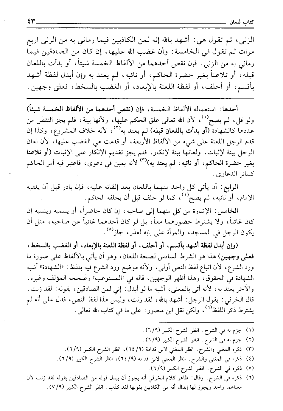 الزِّنَا، ثُمَّ تَقُولُ هِيَ: أَشْهَدُ بِاللَّهِ إِنَّهُ لِمَنِ الْكَاذِبِينَ فِيمَا رَمَانِي بِهِ مِنَ الزِّنَا أَرْبَعَ مَرَّاتٍ، ثُمَّ تَقُولُ فِي الْخَامِسَةِ: وَأَنَّ غَضَبَ اللَّهِ عَلَيْهَا إِنْ كَانَ مِنَ الصَّادِقِينَ فِيمَا رَمَانِي بِهِ مِنَ الزِّنَا.