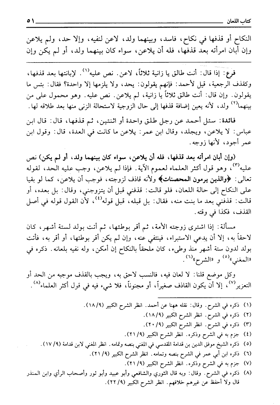فَائِدَةٌ: سُئِلَ أَحْمَدُ عَنْ رَجُلٍ طَلَّقَ وَاحِدَةً أَوِ اثْنَتَيْنِ، ثُمَّ قَذَفَهَا. قَالَ: قَالَ ابْنُ عَبَّاسٍ: لَا يُلَاعِنُ وَيُجْلَدُ. وَقَالَ ابْنُ عُمَرَ: يُلَاعِنُ مَا كَانَتْ فِي الْعُدَّةِ، قَالَ: وَقَوْلُ ابْنِ عُمَرَ أَجْوَدُ ; لِأَنَّهَا زَوْجُهُ.