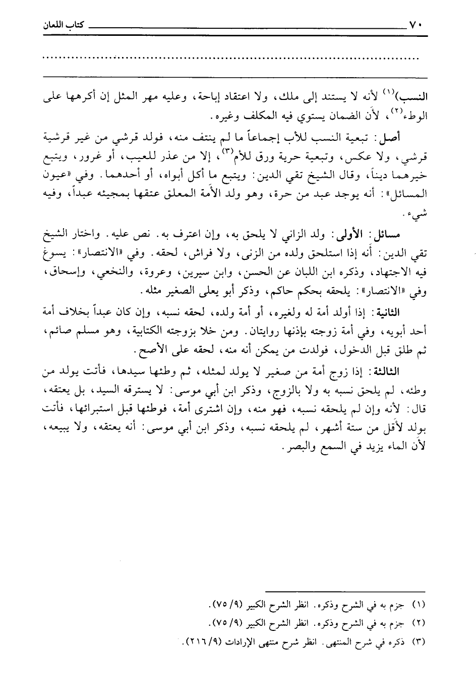 أَصْلٌ: تَبَعِيَّةُ النَّسَبِ لِلْأَبِ إِجْمَاعًا مَا لَمْ يَنْتَفِ مِنْهُ فَوَلَدُ قُرَشِيٍّ مِنْ غَيْرِ قُرَشِيَّةٍ قُرَشِيٌّ، وَلَا عَكْسَ. وَتَبَعِيَّةُ حُرِّيَّةٍ وَرِقٍّ لِلْأُمِّ إِلَّا مَنْ عُذِرَ لِلْعَيْبِ، أَوْ غُرُورٍ وَيَتْبَعُ خَيْرَهُمَا دِينًا. وَقَالَ الشَّيْخُ تَقِيُّ الدِّينِ: وَيَتَّبِعُ مَا أَكَلَ أَبَوَاهُ، أَوْ أَحَدُهُمَا.