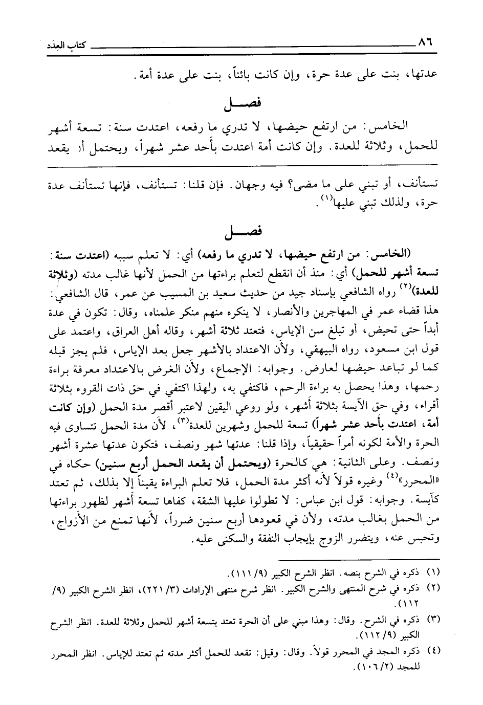 فَصْلٌ (الْخَامِسُ: مَنِ ارْتَفَعَ حَيْضُهَا، لَا تَدْرِي مَا رَفَعَهُ) أَيْ: لَا تَعْلَمُ سَبَبَهُ (اعْتَدَّتْ سَنَةً، تِسْعَةَ أَشْهُرٍ لِلْحَمْلِ) أَيْ: مُنْذُ أَنِ انْقَطَعَ لِتَعْلَمَ بَرَاءَتَهَا مِنَ الْحَمْلِ ; لِأَنَّهَا غَالِبُ مُدَّتِهِ، (وَثَلَاثَةٌ لِلْعِدَّةِ) رَوَاهُ الشَّافِعِيُّ بِإِسْنَادٍ جَيِّدٍ مِنْ حَدِيثِ سَعِيدِ بْنِ الْمُسَيَّبِ، عَنْ عُمَرَ، قَالَ الشَّافِعِيُّ: هَذَا قَضَاءُ عُمَرَ فِي الْمُهَاجِرِينَ، وَالْأَنْصَارِ، لَا يُنْكِرُهُ مِنْهُمْ مُنْكِرٌ عَلِمْنَاهُ، وَقَالَ: تَكُونُ فِي عِدَّةٍ أَبَدًا حَتَّى تَحِيضَ، أَوْ تَبْلُغَ سِنَّ الْإِيَاسِ فَتَعْتَدَّ ثَلَاثَةَ أَشْهُرٍ، وَقَالَهُ أَهْلُ الْعِرَاقِ، وَاعْتَمَدَ عَلَى قَوْلِ ابْنِ مَسْعُودٍ، رَوَاهُ الْبَيْهَقِيُّ، وَلِأَنَّ الِاعْتِدَادَ بِالْأَشْهُرِ جُعِلَ بَعْدَ الْإِيَاسِ، فَلَمْ يَجُزْ قَبْلَهُ كَمَا لَوْ تَبَاعَدَ حَيْضُهَا لِعَارِضٍ. وَجَوَابُهُ: الْإِجْمَاعُ، وَلِأَنَّ الْغَرَضَ بِالِاعْتِدَادِ مَعْرِفَةُ بَرَاءَةِ رَحِمِهَا، وَهَذَا يَحْصُلُ بِهِ بَرَاءَةُ الرَّحِمِ فَاكْتُفِيَ بِهِ، وَلِهَذَا اكْتُفِيَ فِي حَقِّ ذَاتِ الْقُرُوءِ بِثَلَاثَةِ أَقْرَاءٍ، وَفِي حَقِّ الْآيِسَةِ بِثَلَاثَةِ أَشْهُرٍ، وَلَوْ رُوعِيَ الْيَقِينُ لَاعْتُبِرَ أَقْصَرَ مُدَّةِ الْحَمْلِ. (وَإِنْ كَانَتْ أَمَةً اعْتَدَّتْ بِأَحَدَ عَشَرَ شَهْرًا) تِسْعَةً لِلْحَمْلِ وَشَهْرَيْنِ لِلْعِدَّةِ ; لِأَنَّ مُدَّةَ الْحَمْلِ تَتَسَاوَى فِيهِ الْحُرَّةُ وَالْأَمَةُ لِكَوْنِهِ أَمْرًا حَقِيقِيًّا وَإِذَا قُلْنَا: عِدَّتُهَا شَهْرٌ وَنِصْفٌ فَتَكُونُ عِدَّتُهَا عَشَرَةُ أَشْهُرٍ وَنِصْفٌ، وَعَلَى الثَّانِيَةِ: هِيَ كَالْحُرَّةِ. (وَيُحْتَمَلُ أَنْ يَقْعُدَ الْحَمْلُ أَرْبَعَ سِنِينَ) ، حَكَاهُ فِي " الْمُحَرَّرِ " وَغَيْرِهِ قَوْلًا ; لِأَنَّهُ أَكْثَرُ مُدَّةِ الْحَمْلِ، فَلَا تُعْلَمُ الْبَرَاءَةُ يَقِينًا إِلَّا بِذَلِكَ، ثُمَّ تَعْتَدُّ كَآيِسَةٍ. وَجَوَابُهُ: قَوْلُ ابْنِ عَبَّاسٍ: لَا تُطَوِّلُوا عَلَيْهَا الشُّقَّةَ كَفَاهَا تِسْعَةُ أَشْهُرٍ لِظُهُورِ بَرَاءَتِهَا مِنَ الْحَمْلِ بِغَالِبِ مُدَّتِهِ، وَلِأَنَّ فِي قُعُودِهَا أَرْبَعَ سِنِينَ ضَرَرًا لِأَنَّهَا تُمْنَعُ مِنَ الْأَزْوَاجِ وَتُحْبَسُ عَنْهُ وَيَتَضَرَّرُ الزَّوْجُ بِإِيجَابِ النَّفَقَةِ، وَالسُّكْنَى عَلَيْهِ.