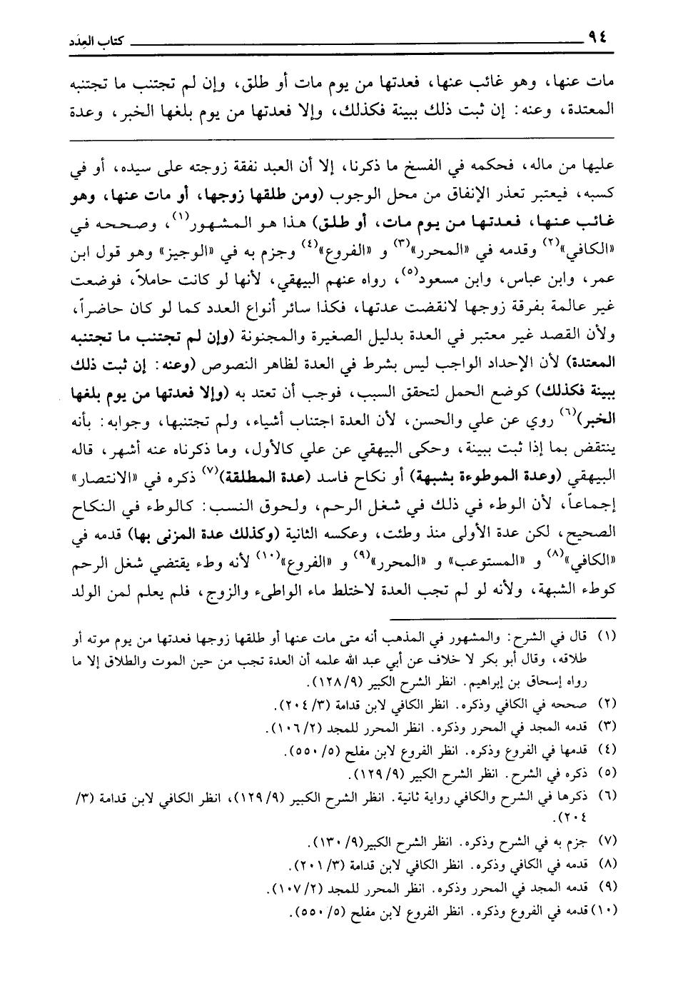 (وَمَنْ طَلَّقَهَا زَوْجُهَا، أَوْ مَاتَ عَنْهَا، وَهُوَ غَائِبٌ عَنْهَا فَعِدَّتُهَا مِنْ يَوْمِ مَاتَ، أَوْ طَلَّقَ) هَذَا هُوَ الْمَشْهُورُ وَصَحَّحَهُ فِي " الْكَافِي "، وَقَدَّمَهُ فِي " الْمُحَرَّرِ "، وَ " الْفُرُوعِ "، وَجَزَمَ بِهِ فِي " الْوَجِيزِ "، وَهُوَ قَوْلُ ابْنِ عُمَرَ، وَابْنِ عَبَّاسٍ، وَابْنِ مَسْعُودٍ رَوَاهُ عَنْهُمُ الْبَيْهَقِيُّ ; لِأَنَّهَا لَوْ كَانَتْ حَامِلًا، فَوَضَعَتْ غَيْرَ عَالِمَةٍ بِفُرْقَةِ زَوْجِهَا ; لَانْقَضَتْ عِدَّتُهَا، فَكَذَا سَائِرُ أَنْوَاعِ الْعِدَدِ كَمَا لَوْ كَانَ حَاضِرًا، وَلِأَنَّ الْقَصْدَ غَيْرُ مُعْتَبَرٍ فِي الْعِدَّةِ بِدَلِيلِ الصَّغِيرَةِ، وَالْمَجْنُونَةِ (وَإِنْ لَمْ تَجْتَنِبْ مَا تَجْتَنِبُهُ الْمُعْتَدَّةُ) لِأَنَّ الْإِحْدَادَ الْوَاجِبَ لَيْسَ بِشَرْطٍ فِي الْعِدَّةِ لِظَاهِرِ النُّصُوصِ (وَعَنْهُ: إِنْ ثَبَتَ ذَلِكَ بِبَيِّنَةٍ فَكَذَلِكَ) كَوَضْعِ الْحَمْلِ لِتَحَقُّقِ السَّبَبِ فَوَجَبَ أَنْ تَعْتَدَّ بِهِ (وَإِلَّا فَعِدَّتُهَا مِنْ يَوْمِ بَلَغَهَا الْخَبَرُ) رُوِيَ عَنْ عَلِيٍّ، وَالْحَسَنِ ; لِأَنَّ الْعِدَّةَ اجْتِنَابُ أَشْيَاءَ، وَلَمْ تَجْتَنِبْهَا، وَجَوَابُهُ: بِأَنَّهُ يَنْتَقِضُ بِمَا إِذَا ثَبَتَ بِبَيِّنَةٍ وَحَكَى الْبَيْهَقِيُّ عَنْ عَلِيٍّ كَالْأَوَّلِ، وَمَا ذَكَرْنَاهُ عَنْهُ أَشْهَرُ، قَالَهُ الْبَيْهَقِيُّ (وَعِدَّةُ الْمَوْطُوءَةِ بِشُبْهَةٍ) أَوْ نِكَاحٍ فَاسِدٍ (عِدَّةُ الْمُطَلَّقَةِ) ذَكَرَهُ فِي " الِانْتِصَارِ " إِجْمَاعًا ; لِأَنَّ الْوَطْءَ فِي ذَلِكَ فِي شَغْلِ الرَّحِمِ وَلُحُوقِ النَّسَبِ كَالْوَطْءِ فِي النِّكَاحِ الصَّحِيحِ، لَكِنَّ عِدَّةَ الْأُولَى مُنْذُ وُطِئَتْ، وَعَكْسُهُ الثَّانِيَةُ (وَكَذَلِكَ عِدَّةُ الْمَزْنِي بِهَا) قَدَّمَهُ فِي " الْكَافِي "، وَ " الْمُسْتَوْعِبِ "، وَ " الْمُحَرَّرِ "، وَ " الْفُرُوعِ " ; لِأَنَّهُ وَطْءٌ يَقْتَضِي شَغْلَ الرَّحِمِ كَوَطْءِ الشُّبْهَةِ، وَلِأَنَّهُ لَوْ لَمْ تَجِبِ الْعِدَّةُ لَاخْتَلَطَ مَاءُ الْوَاطِئِ وَالزَّوْجِ، فَلَمْ يُعْلَمْ لِمَنِ الْوَلَدُ