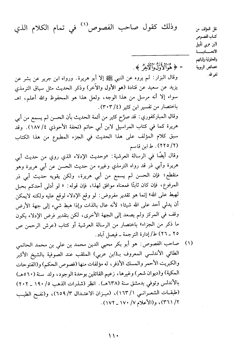 وذلك كقول صاحب الفصوص في تمام الكلام الذي
