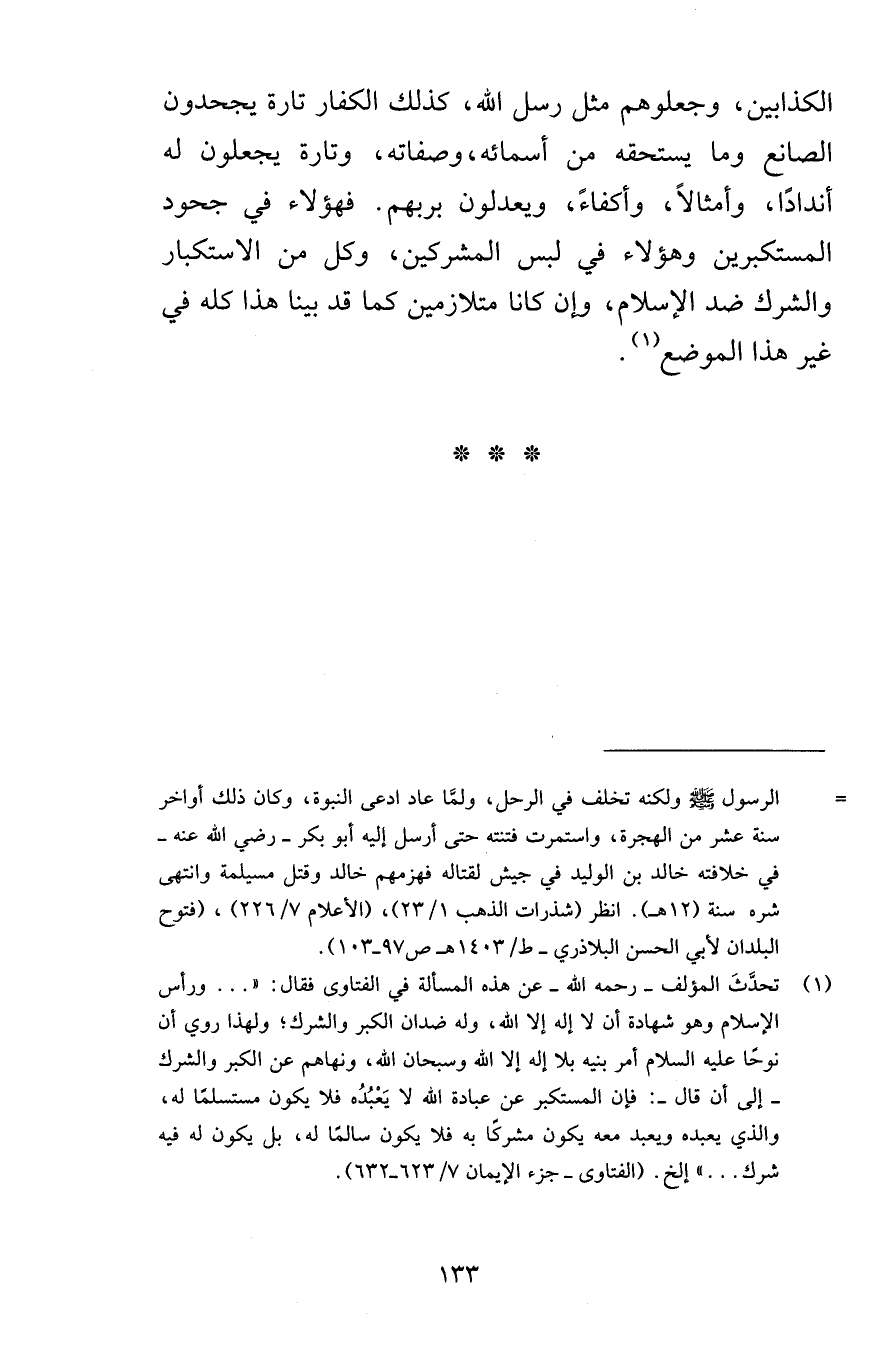 الكذابين وجعلوهم مثل رسل الله كذلك الكفار تارة يجحدون الصانع وما يستحقه من أسمائه وصفاته وتارة يجعلونه له أندادًا وأمثالاً وأكفاءً ويعدلون بربهم فهؤلاء في جحود المستكبرين وهؤلاء في لبس المشركين وكل من الاستكبار والشرك ضد الإسلام وإن كانا متلازمين كما قد بينا هذا كله في غير هذا الموضع