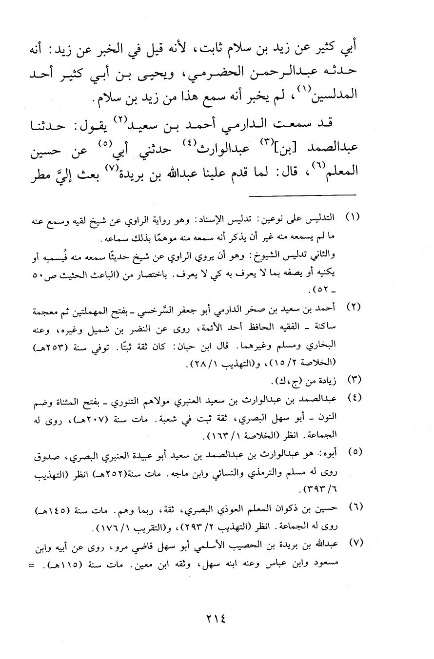 أبي كثير عن زيد بن سلام ثابت لأنه قيل في الخبر عن زيد أنه حدثه عبد الرحمن الحضرمي ويحيى بن أبي كثير أحد المدلسين لم يخبر أنه سمع هذا من زيد بن سلام قد سمعت الدارمي أحمد بن سعيد يقول حدثنا عبد الصمد بن عبد الوارث حدثني أبي عن حسين المعلم قال لما قدم علينا عبد الله بن بريدة بعث إليَّ مطر