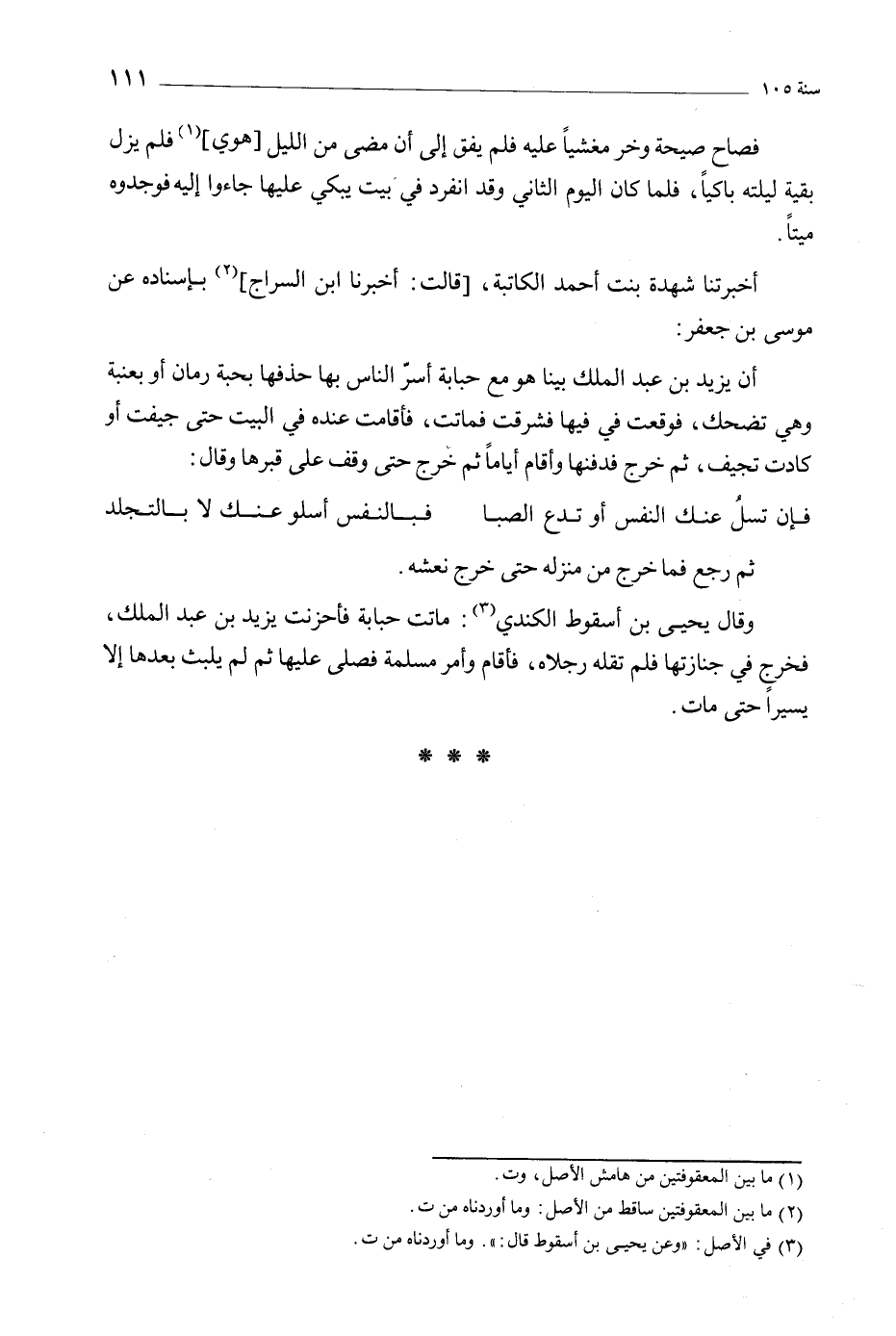 أخبرتنا شهدة بنت أحمد الكاتبة، [قالت: أَخْبَرَنَا ابن السراج] [2] بإسناده عن موسى بن جعفر:
