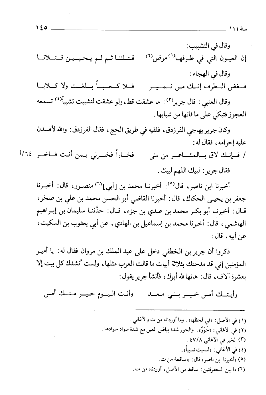 وقال العتبي: قال جرير [3] : ما عشقت قط، ولو عشقت لتشببت تشببا [4] تسمعه العجوز فتبكي على ما فاتها من شبابها.