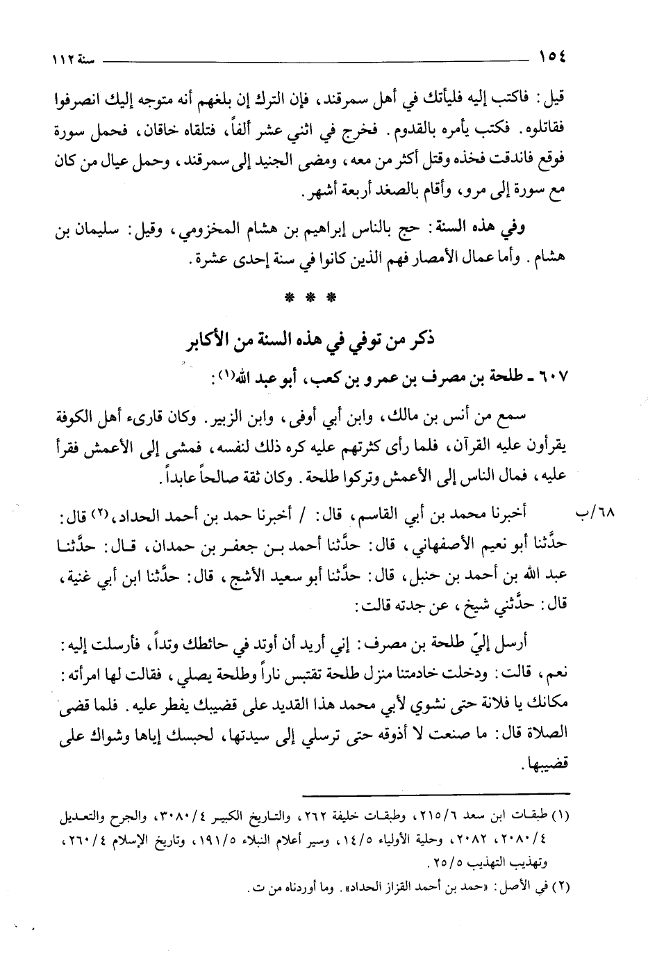607- طلحة بن مصرف بن عمرو بن كعب، أبو عبد الله [1] :