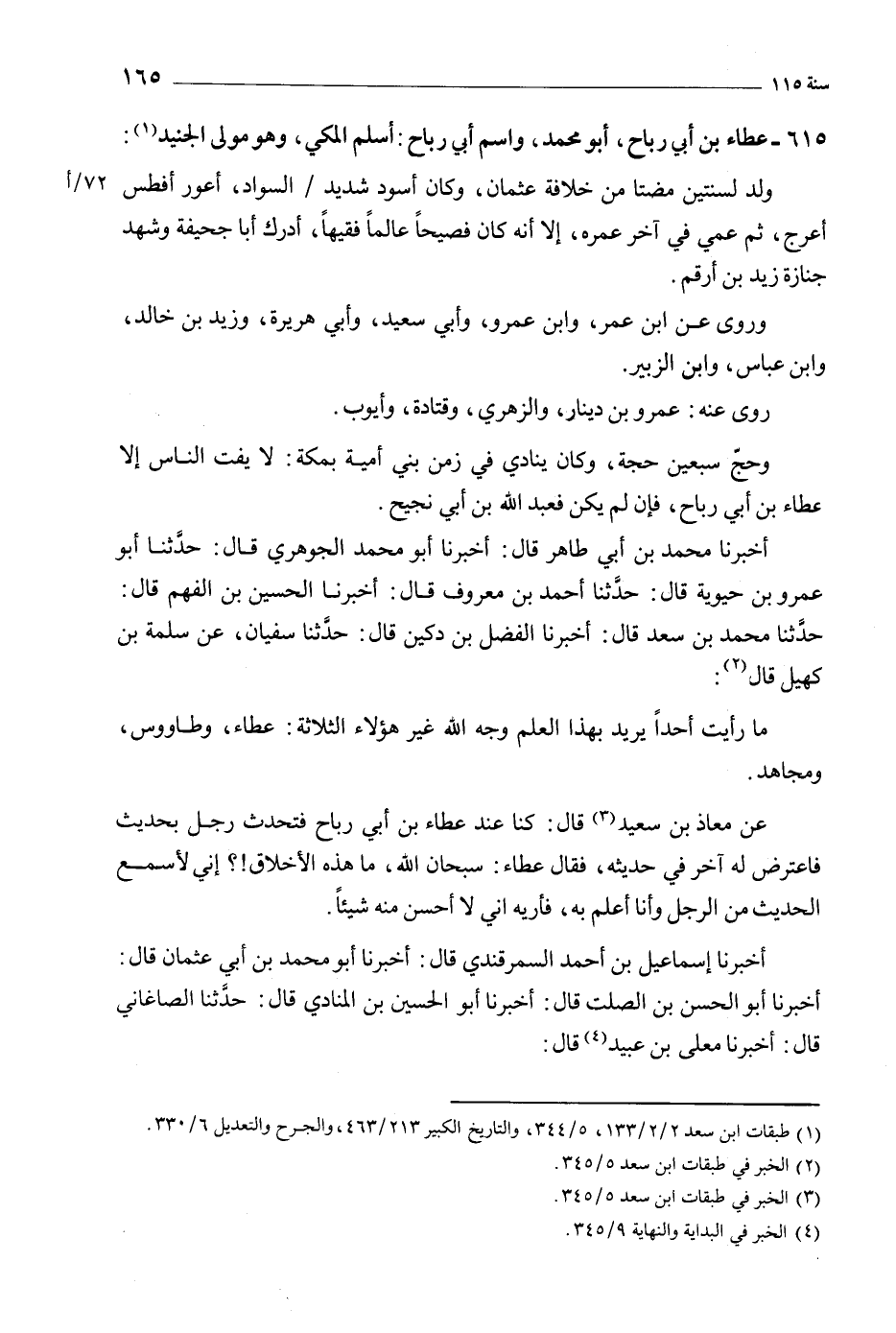 615- عطاء بن أبي رباح، أبو محمد، واسم أبي رباح: أسلم المكي، وهو مولى الجنيد [1] :