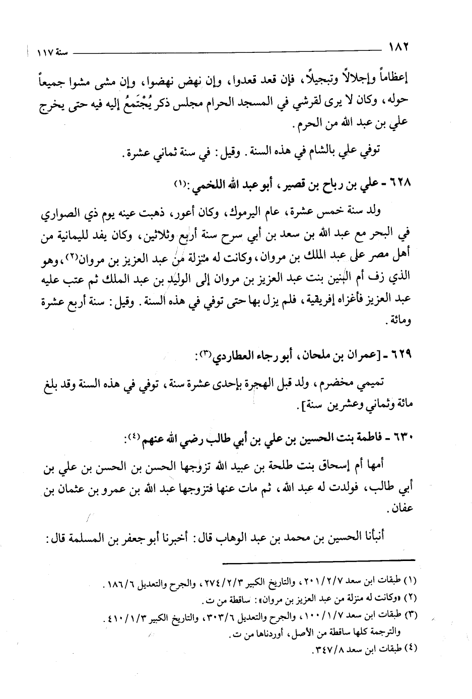 [1] طبقات ابن سعد 7/ 2/ 201، والتاريخ الكبير 3/ 2/ 274، والجرح والتعديل 6/ 186.