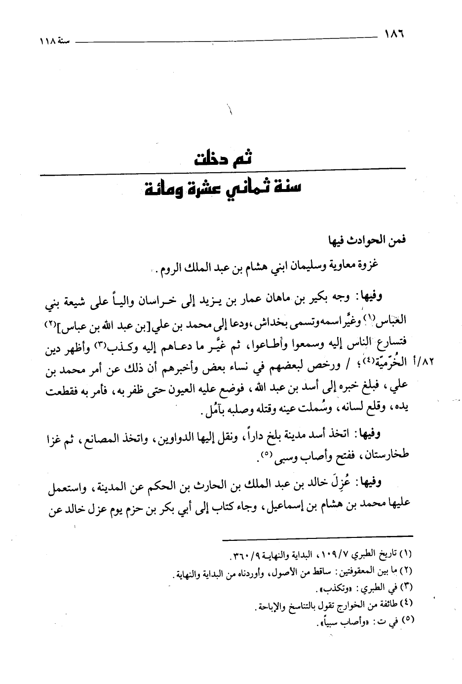 ثم دخلت سنة ثماني عشرة ومائة