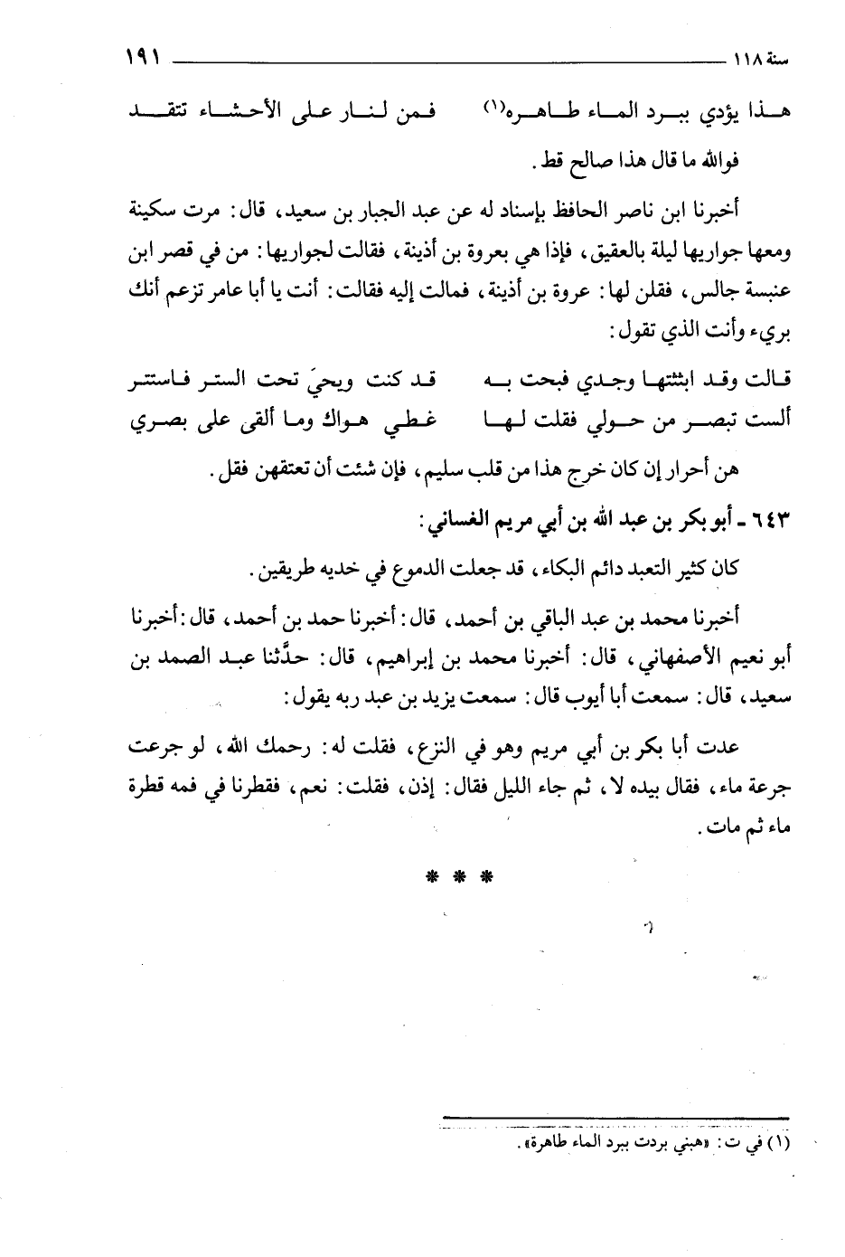 [1] في ت: «هبني بردت ببرد الماء طاهرة» .