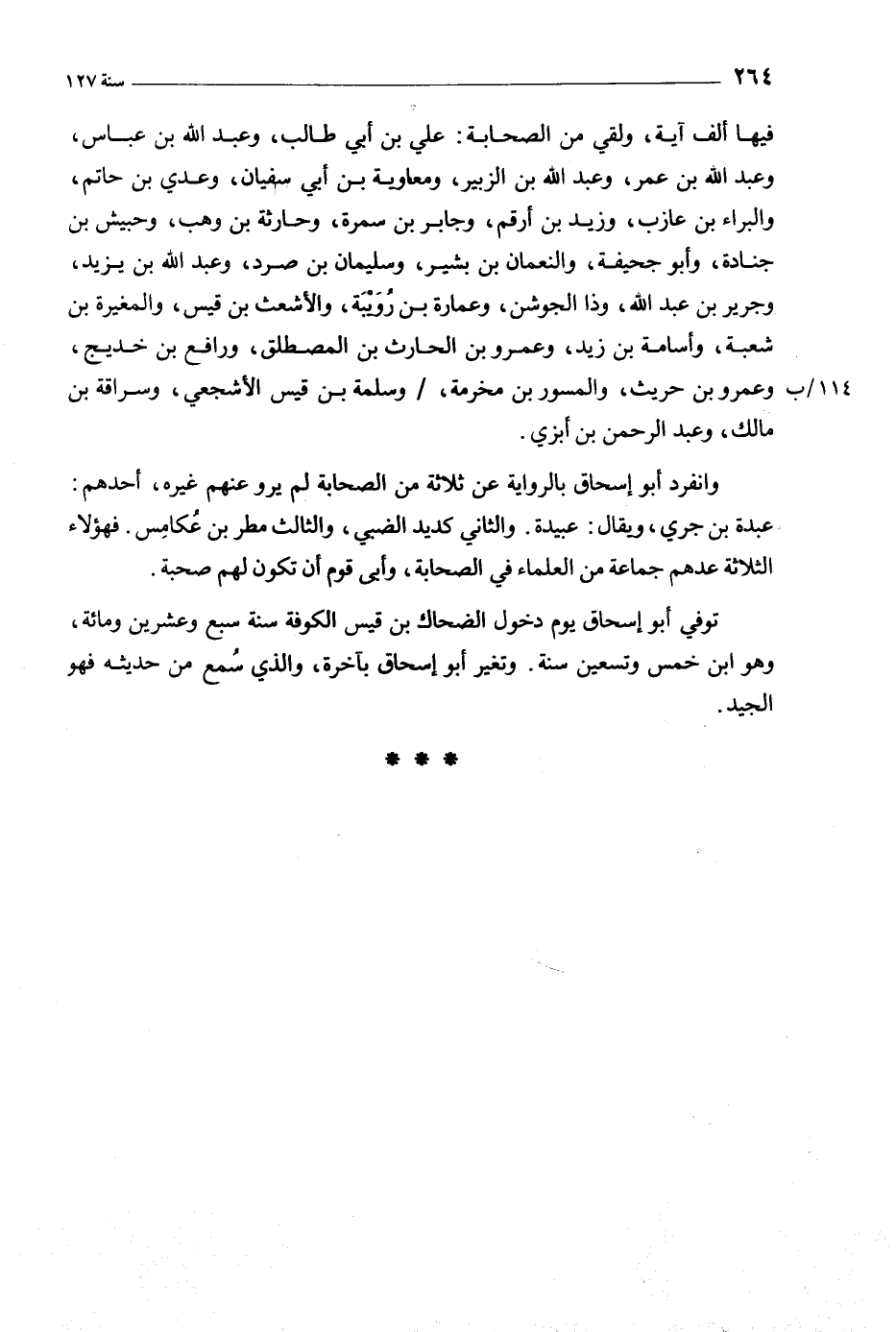وانفرد أبو إسحاق بالرواية عن ثلاثة من الصحابة لم يرو عنهم غيره، أحدهم: