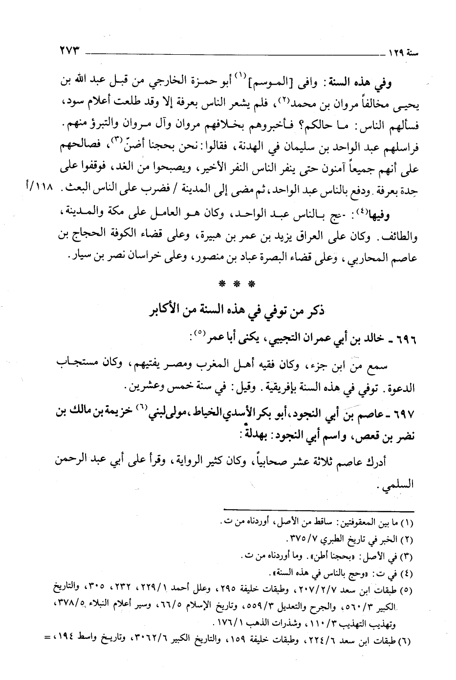 [6] طبقات ابن سعد 6/ 224، وطبقات خليفة 159، والتاريخ الكبير 6/ 3062، وتاريخ واسط 194،
