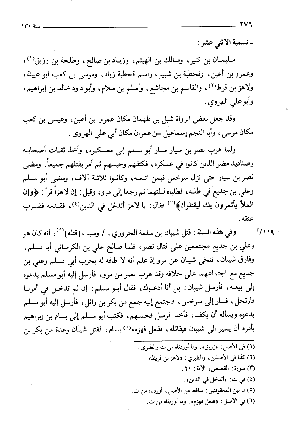وقد جعل بعض الرواة شبل بن طهمان مكان عمرو بن أعين، وعيسى بن كعب مكان موسى، وأبا النجم إسماعيل بن عمران مكان أبي علي الهروي.