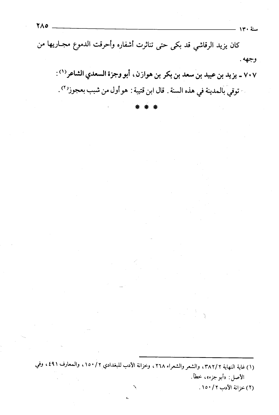 707- يزيد بن عبيد بن سعد بن بكر بن هوازن، أبو وجزة السعدي الشاعر [1] :