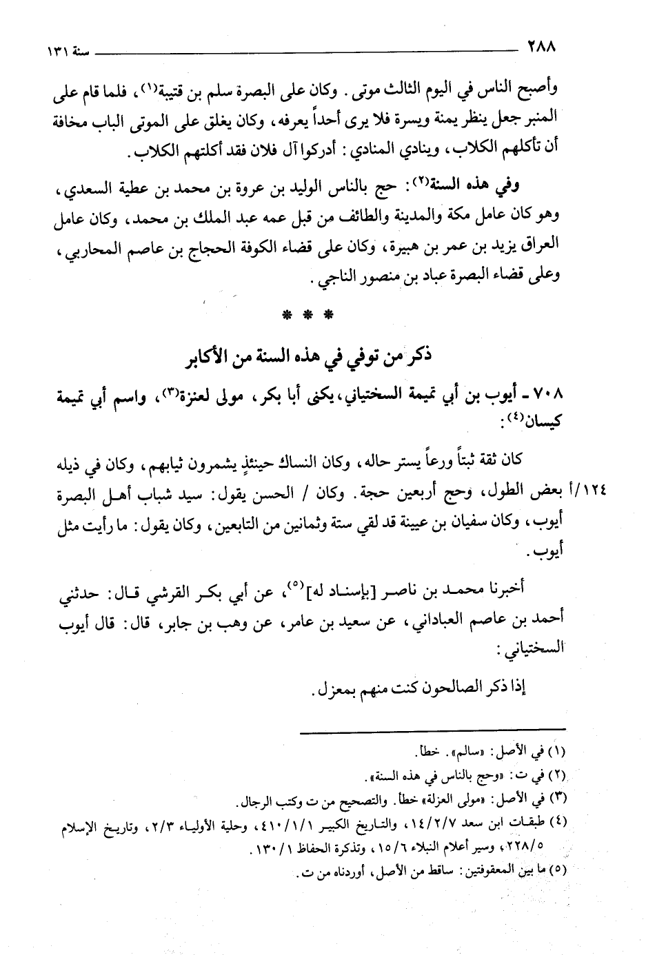 708- أيوب بن أبي تميمة السختياني، يكنى أبا بكر، مولى لعنزة [3] ، واسم أبي تميمة كيسان [4] :