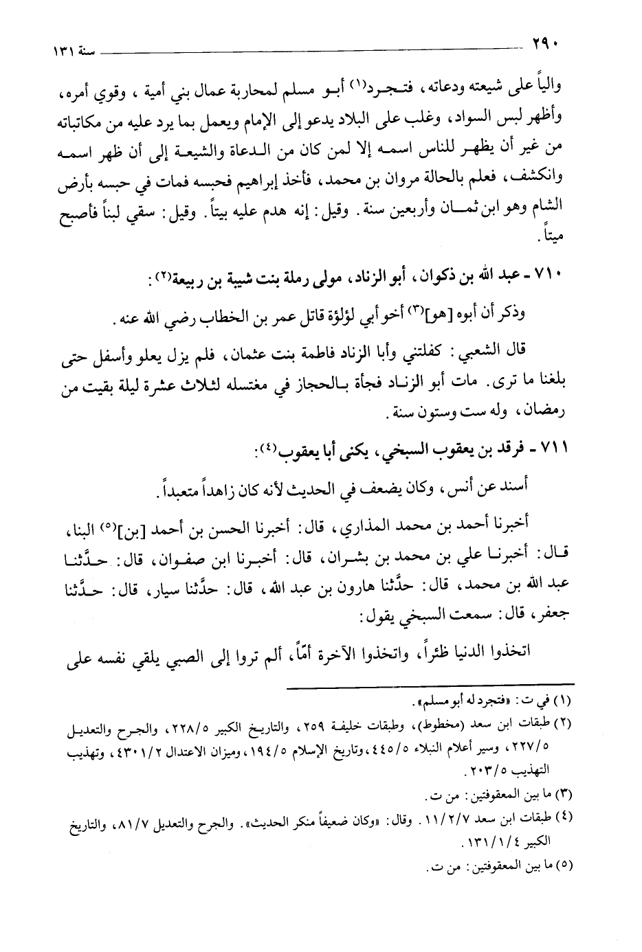 [4] طبقات ابن سعد 7/ 2/ 11. وقال: «وكان ضعيفا منكر الحديث» . والجرح والتعديل 7/ 81، والتاريخ الكبير 4/ 1/ 131.
