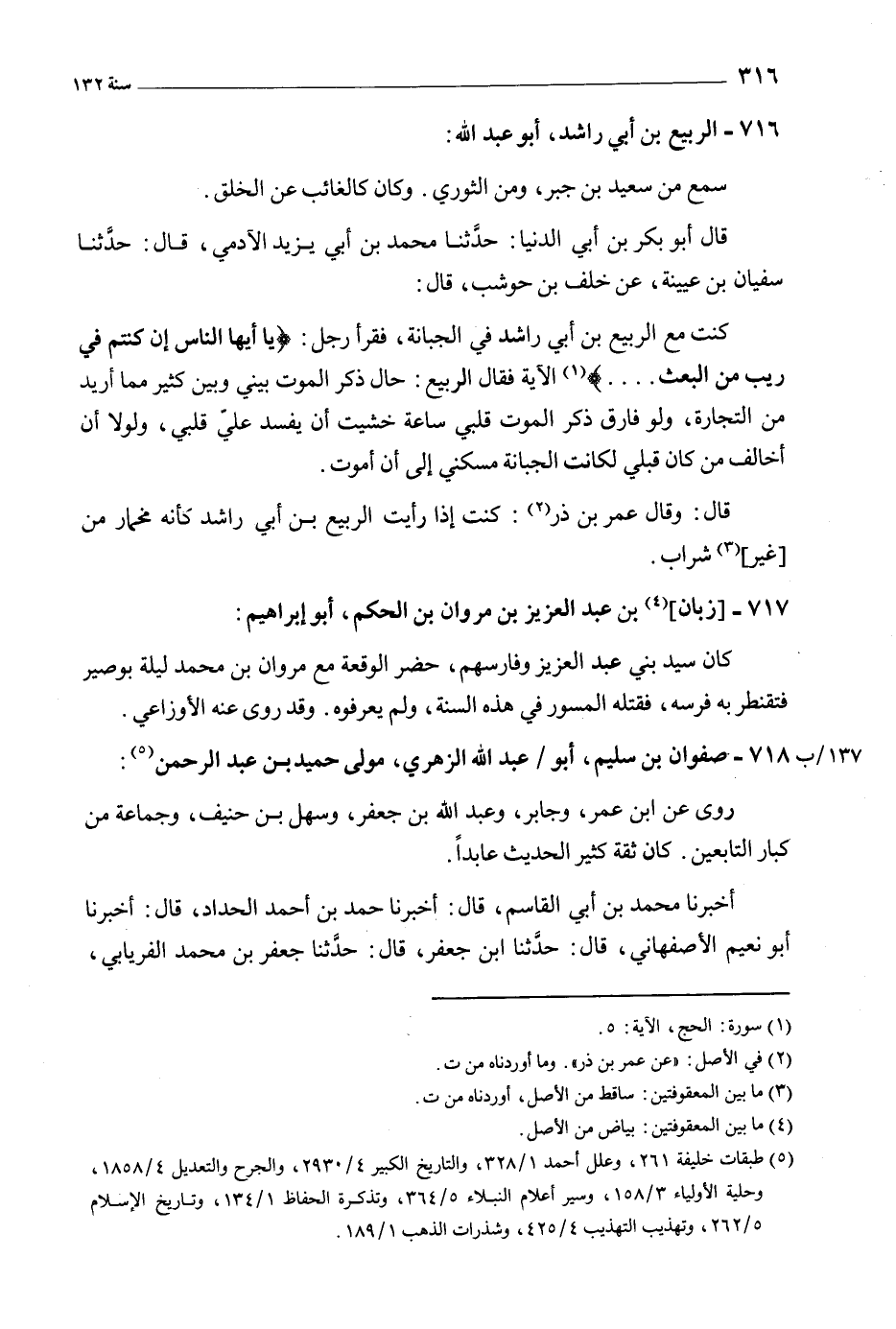 [5] طبقات خليفة 261، وعلل أحمد 1/ 328، والتاريخ الكبير 4/ 2930، والجرح والتعديل 4/ 1858، وحلية الأولياء 3/ 158، وسير أعلام النبلاء 5/ 364، وتذكرة الحفاظ 1/ 134، وتاريخ الإسلام 5/ 262، وتهذيب التهذيب 4/ 425، وشذرات الذهب 1/ 189.