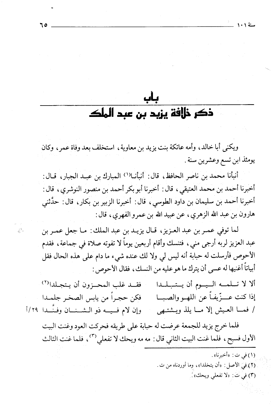 فلما خرج يزيد للجمعة عرضت له حبابة على طريقه فحركت العود وغنت البيت الأول فسبح، فلما غنت البيت الثاني قال: مه مه ويحك لا تفعلي [3] ، فلما غنت الثالث