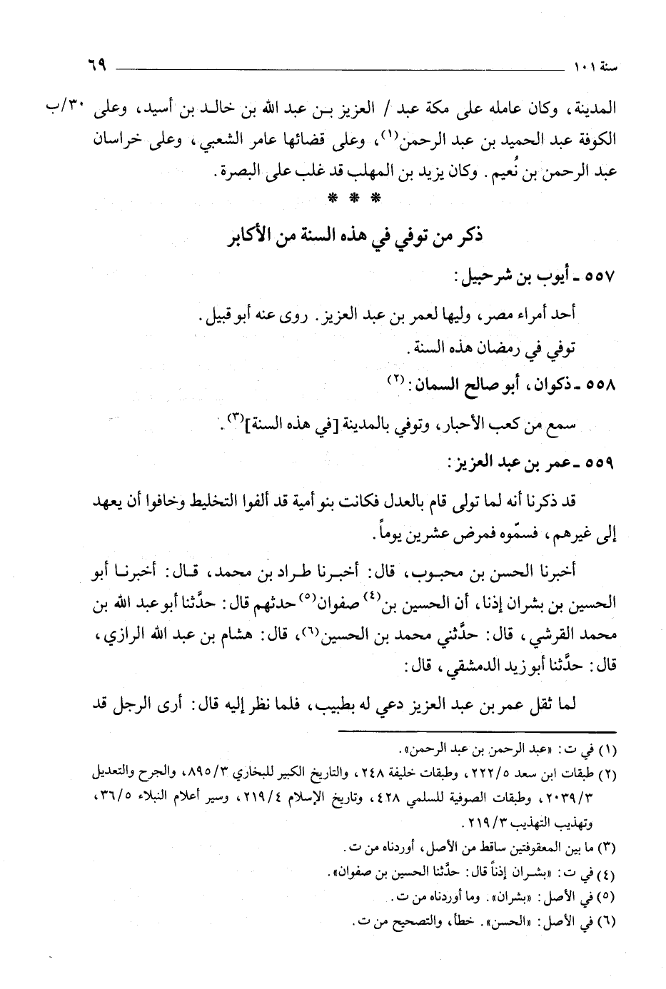 [2] طبقات ابن سعد 5/ 222، وطبقات خليفة 248، والتاريخ الكبير للبخاريّ 3/ 895، والجرح والتعديل 3/ 2039، وطبقات الصوفية للسلمي 428، وتاريخ الإسلام 4/ 219، وسير أعلام النبلاء 5/ 36، وتهذيب التهذيب 3/ 219.