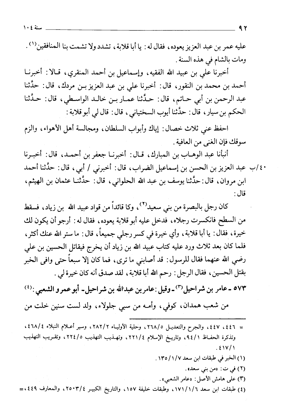 [4] طبقات ابن سعد 6/ 1/ 171، وطبقات خليفة 157، والتاريخ الكبير 4/ 2503، والمعارف 449،