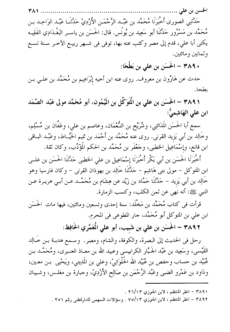 [2] 3892- انظر المنتظم، لابن الجوزي 13/75. وسؤالات السهمي للدارقطنى رقم 251.