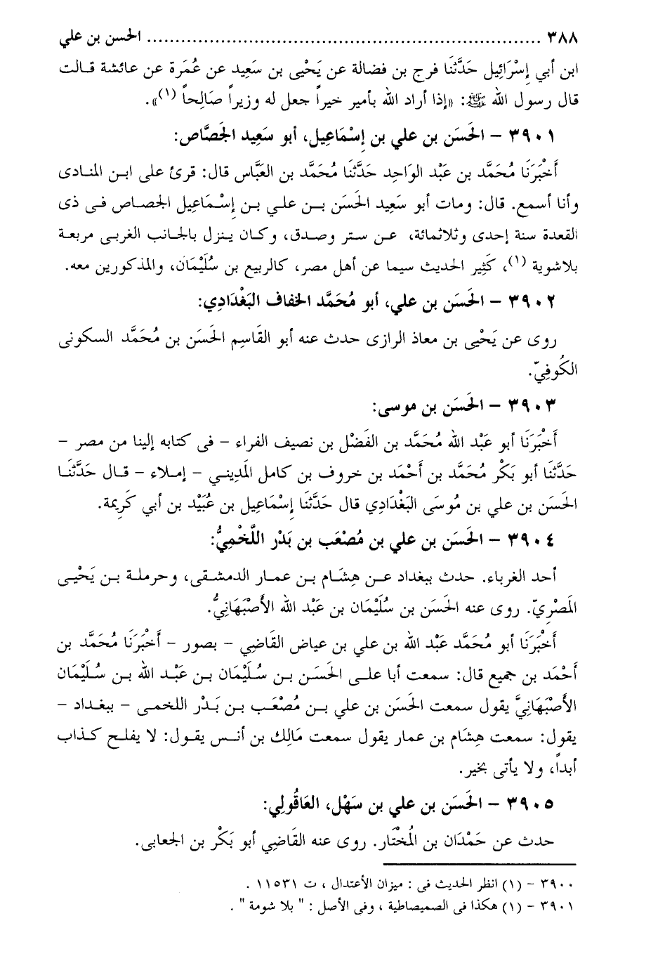 3901- الْحَسَن بن عَلِيّ بن إِسْمَاعِيل، أَبُو سعيد الجصاص: