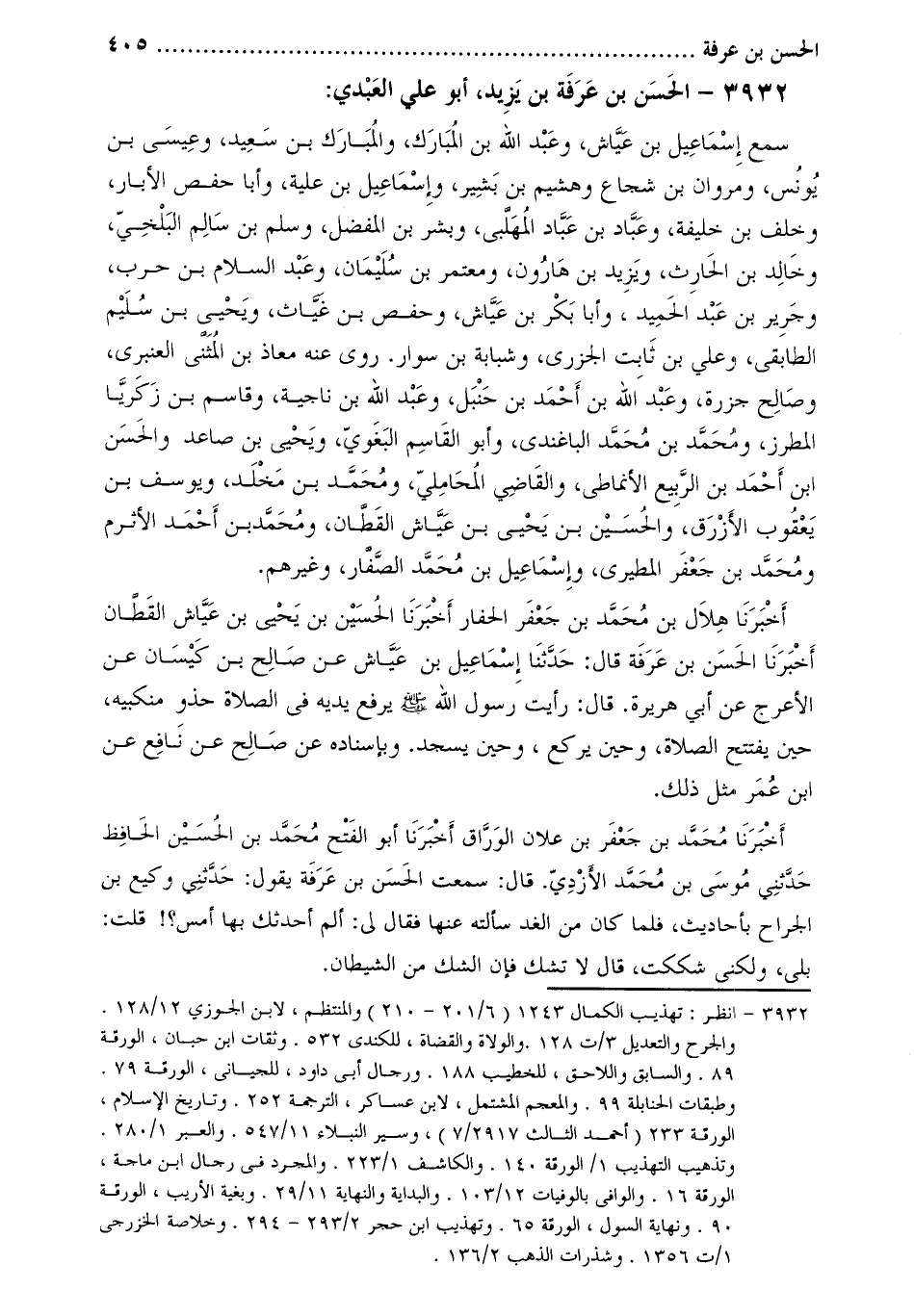 [1] 3932- انظر: تهذيب الكمال 1243 (6/201- 210) والمنتظم، لابن الجوزي 12/128.