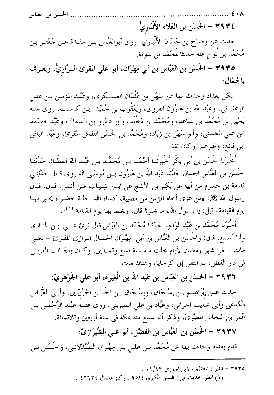 3935- الْحَسَن بن الْعَبَّاس بن أَبِي مهران، أَبُو عَلِيّ الْمُقْرِئ الرَّازِيّ، ويعرف بالجمال [1] :