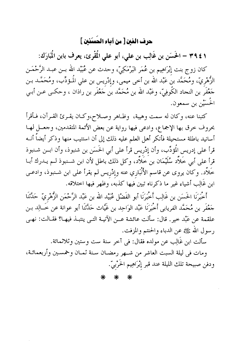 3941- الْحَسَن بن غالب بن عَلِيّ، أَبُو عَلِيّ الْمُقْرِئ، يعرف بابن المبارك: