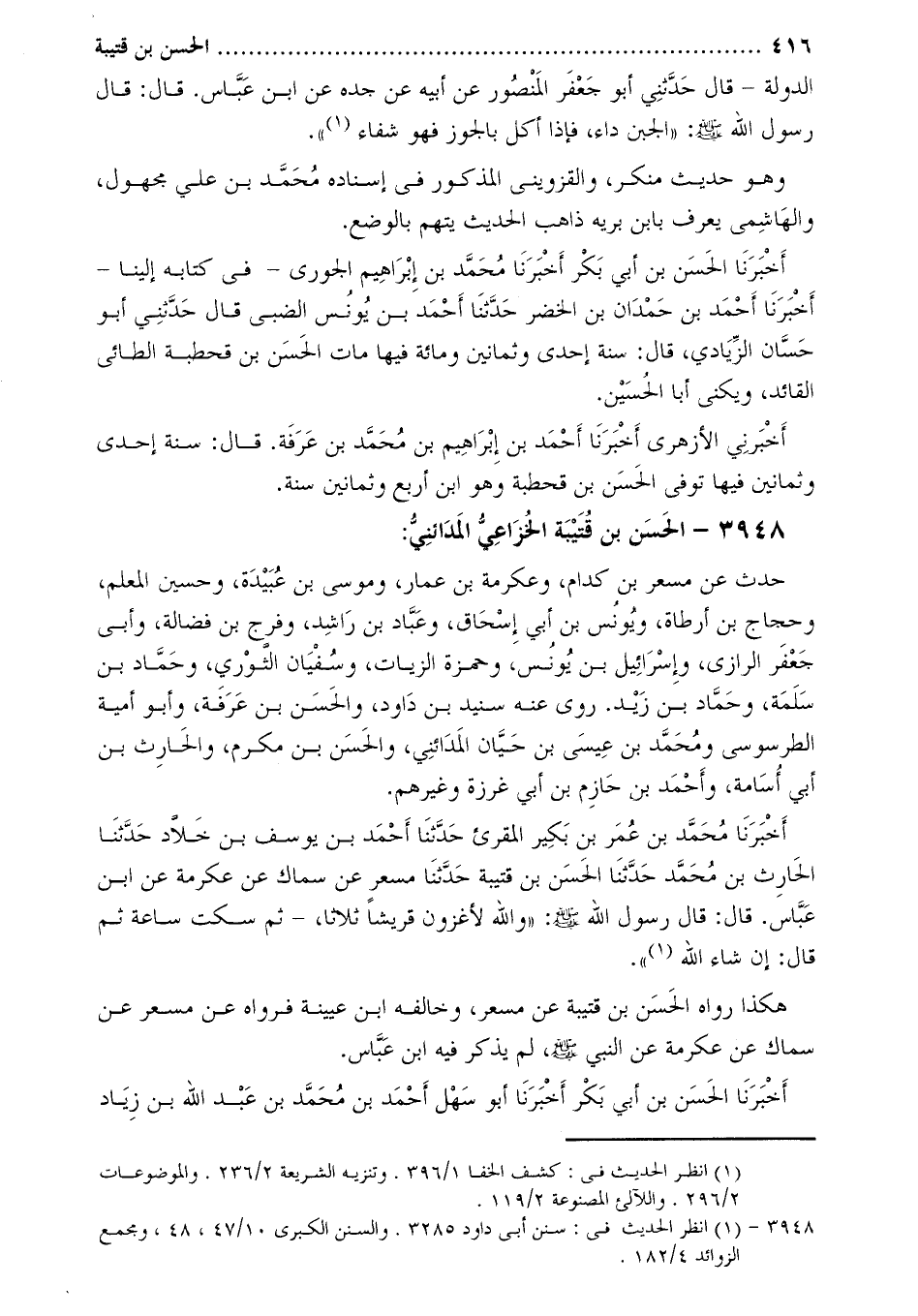 [2] 3948- انظر الحديث في: سنن أبى داود 3285. والسنن الكبرى 10/47، 48، ومجمع الزوائد 4/182.
