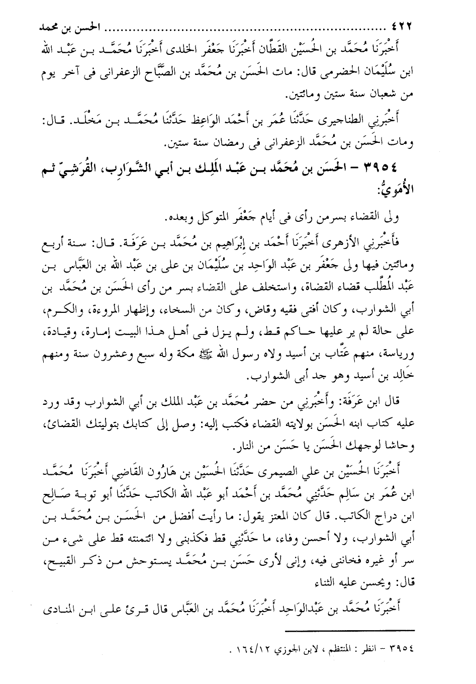 3954- الْحَسَن بْن مُحَمَّدِ بْنِ عَبْد الملك بْن أَبِي الشوارب، القرشي ثم الأموي [1] :