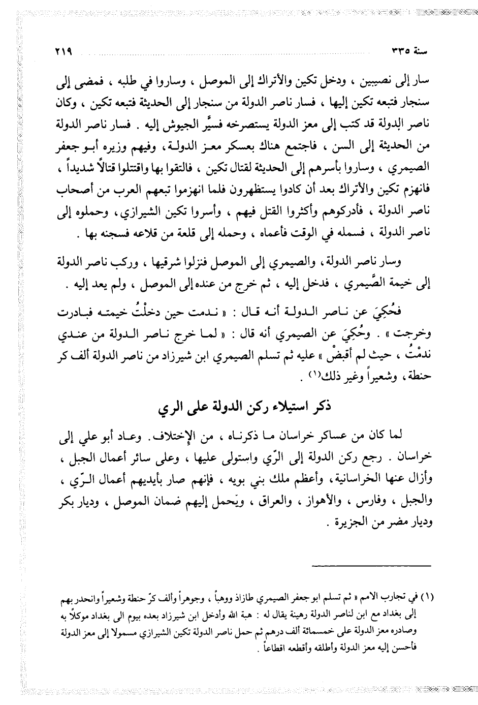 $ ذكر استيلاء ركن الدولة على الري $