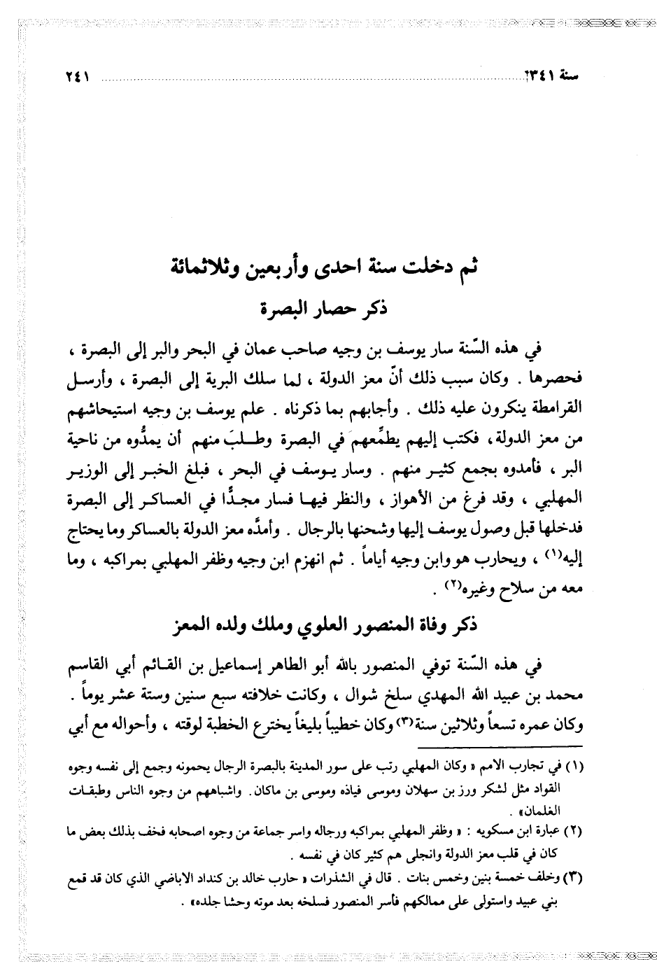 $ ثم دخلت سنة احدى وأربعين وثلاثمائة $