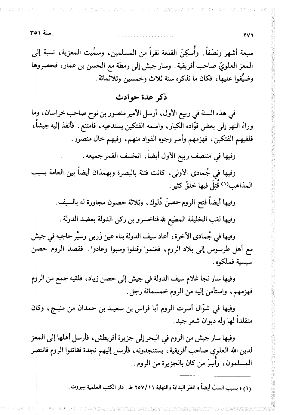 وفيها سار نجا غلام سيف الدولة في جيش إلى حصن زياد فلقيه جمع من الروم فهزمهم واستأمن إليه من الروم خمسمائة رجل