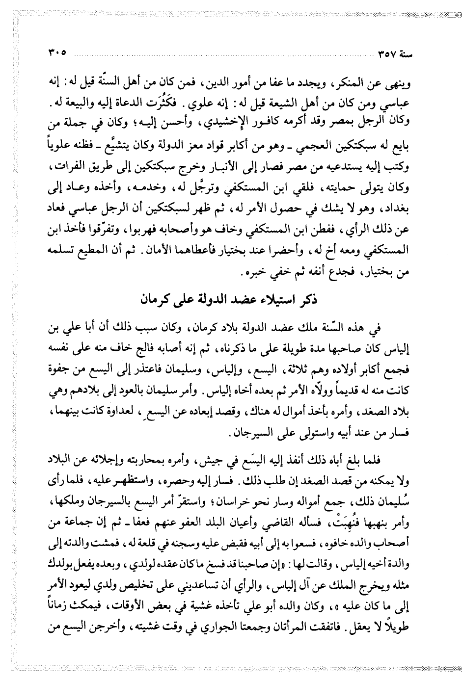 $ ذكر استيلاء عضد الدولة على كرمان $