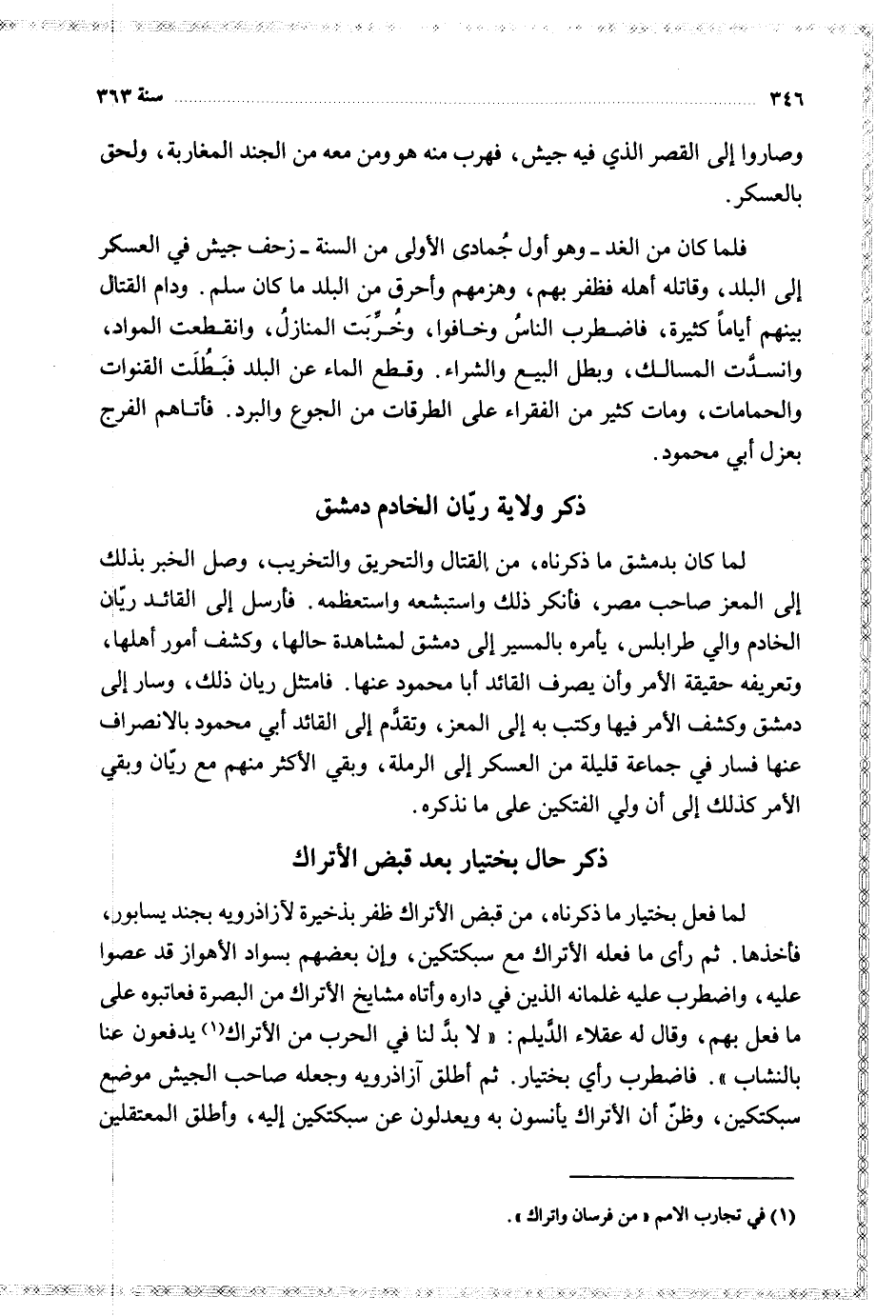 لما كان بدمشق ما ذكرناه من القتال والتحريق والتخريب وصل الخبر بذلك إلى المعز صاحب مصر فأنكر ذلك واستبشعه واستعظمه فأرسل إلى القائد ريان الخادم والي طرابلس يأمره بالمسير إلى دمشق لمشاهدة حالها وكشف أمور أهلها وتعريفه حقيقة الأمر وأن يصرف القائد أبا محمود عنها فامتثل ريان ذلك وسار إلى دمشق وكشف الأمر فيها وكتب به إلى المعز وتقدم إلى القائد أبي محمود بالانصراف عنها فسار في جماعة قليلة من العسكر إلى الرملة ويقي الأكثر منهم مع ريان وبقي الأمر كذلك إلى أن ولي الفتكين على ما نذكره