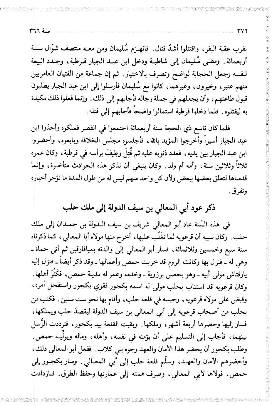 $ ذكر عود أبي المعالي بن سيف الدولة إلى ملك حلب $
