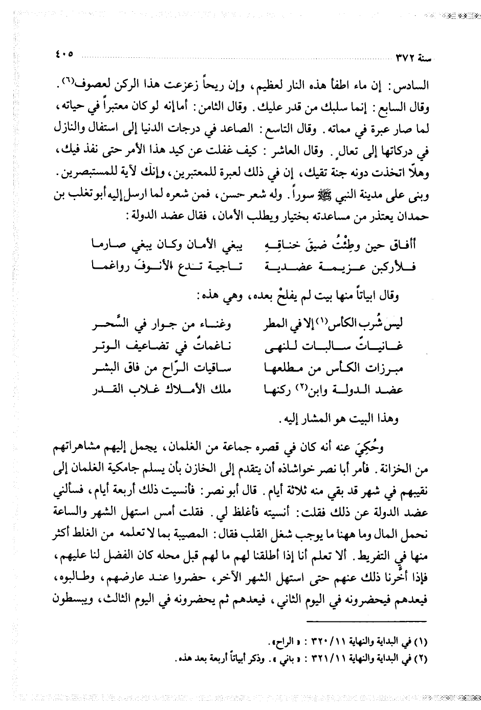 ( عضد الدولة وابن ركنها ... ملك الاملاك غلاب القدر )