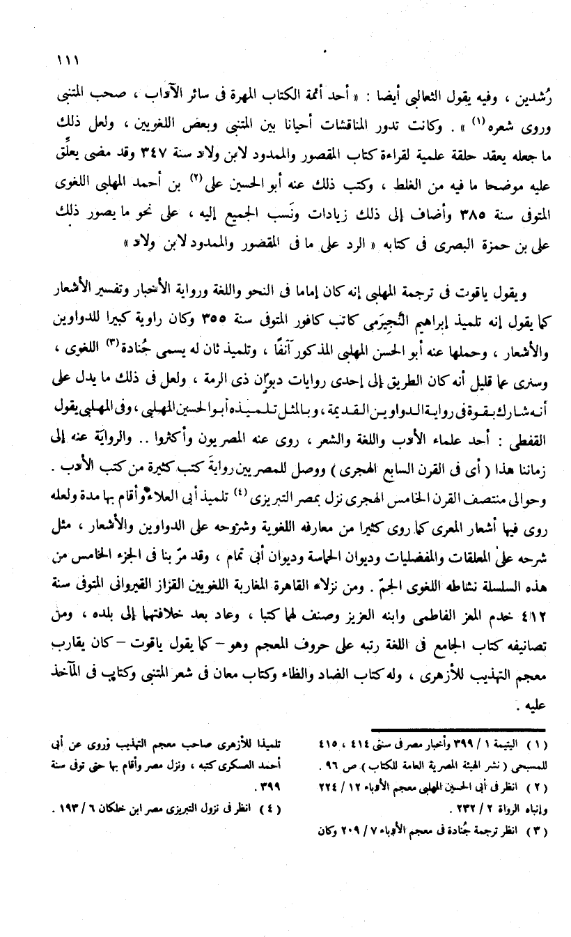 (¬2) انظر فى أبى الحسين المهلبى معجم الأدباء 12/ 224 وإنباه الرواة 2/ 232.