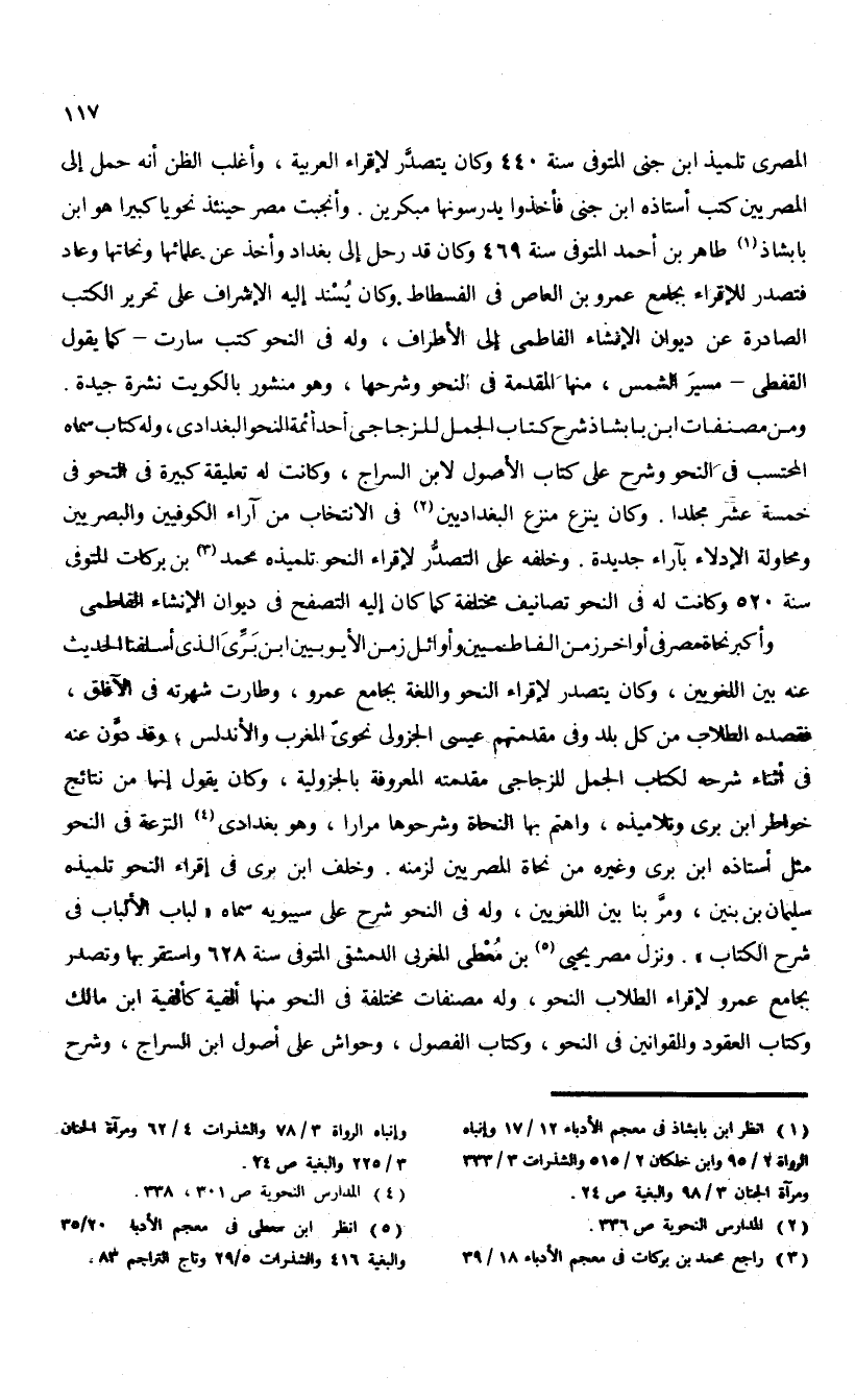 (¬1) انظر ابن بابشاذ فى معجم الأدباء 12/ 17 وإنباه الرواة 2/ 95 وابن خلكان 2/ 515 والشذرات 3/ 333 ومرآة الجنان 3/ 98 والبغية ص 24.