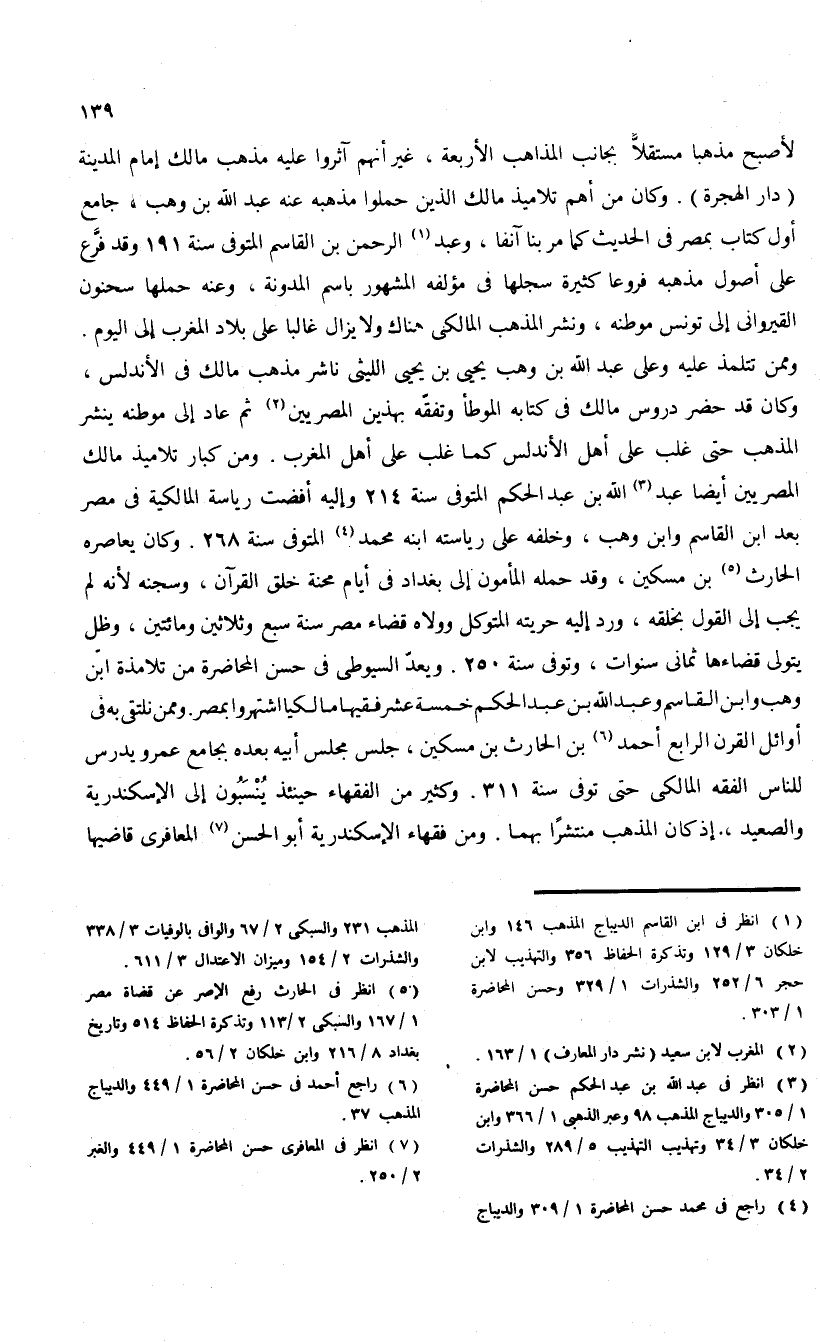 (¬1) انظر فى ابن القاسم الديباج المذهب 146 وابن خلكان 3/ 129 وتذكرة الحفاظ 356 والتهذيب لابن حجر 6/ 252 والشذرات 1/ 329 وحسن المحاضرة 1/ 303.