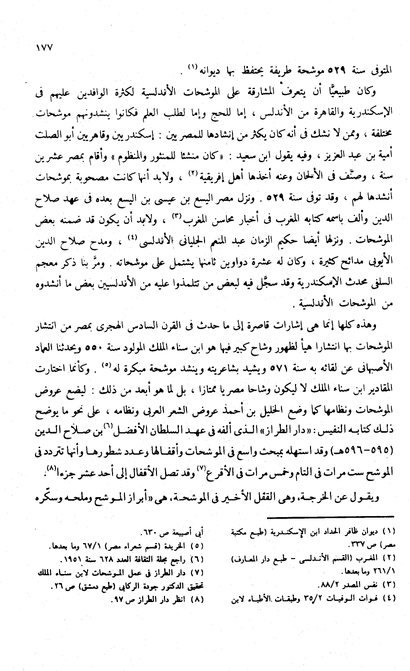 (¬7) دار الطراز فى عمل الموشحات لابن سناء الملك تحقيق الدكتور جودة الركابى (طبع دمشق) ص 26.