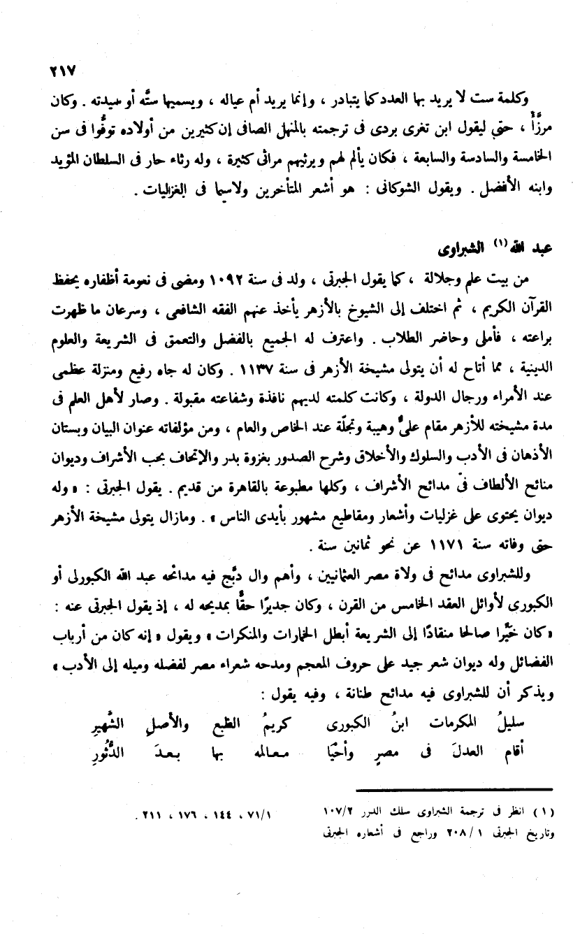 (¬1) انظر فى ترجمة الشبراوى سلك الدرر 2/ 107 وتاريخ الجبرتى 1/ 208 وراجع فى أشعاره الجبرتى 1/ 71، 144، 176، 211.